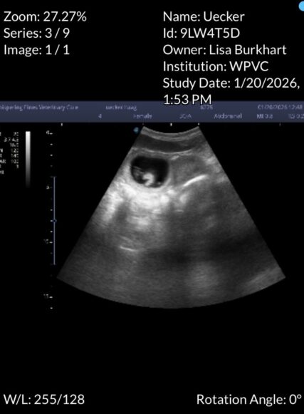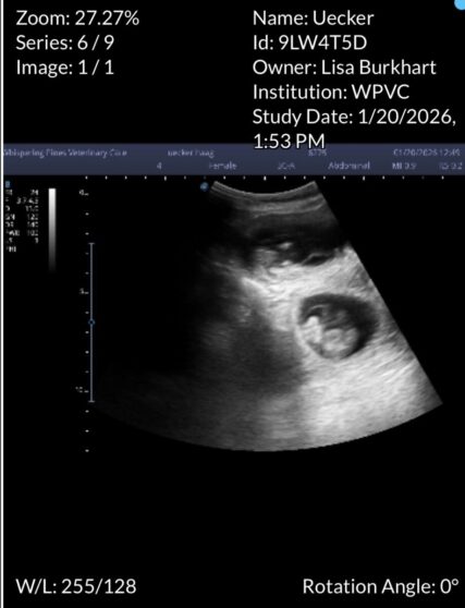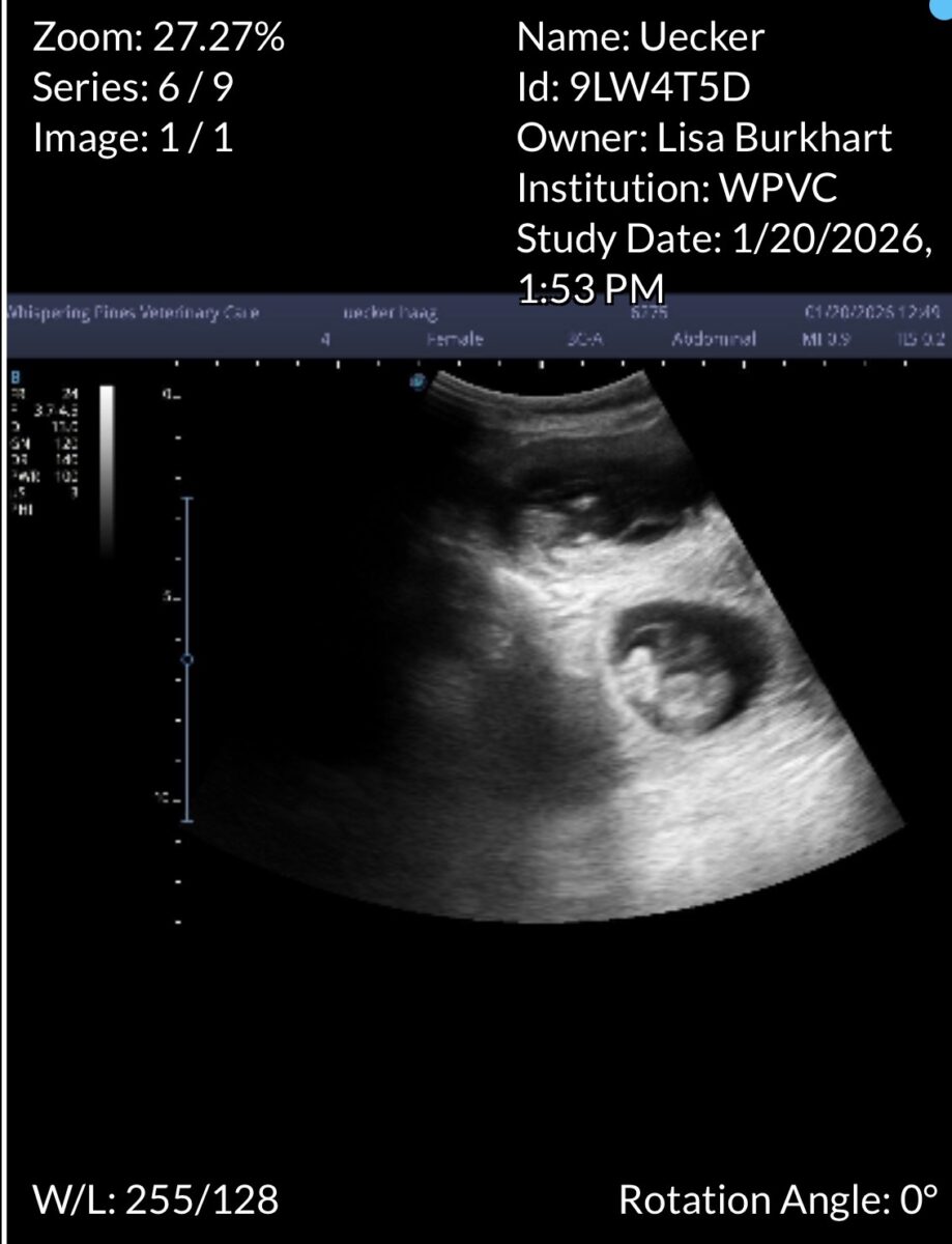 So very excited to say Uecker had an ultrasound and the vet said she is “full of puppies”. She feels there are 8 or more. Uecker is feeling well and extra snuggly as is very normal during this phase. She will begin to eat 25% more in her diet this week with extra needs during the rapid puppy growth. She is also on Nuvet supplement and gets lots of love and snuggles to create the best environment for puppies to grow and develop. So very excited for the adventure ahead. We will update next as Uecker gets settled into the nursery just before puppies arrive.