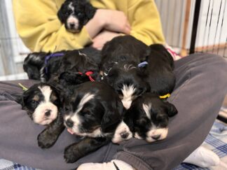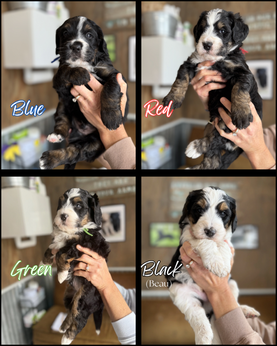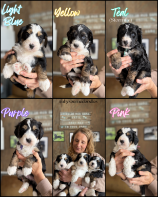 Order of pictures below: Murphy (Light Blue Girl), Yellow (TBD), Tilly (pink), Stormy (teal), Coda (Purple), Beau (Black), Murphy (Blue Boy), Xavi (Red Boy), & Lucky (green boy)