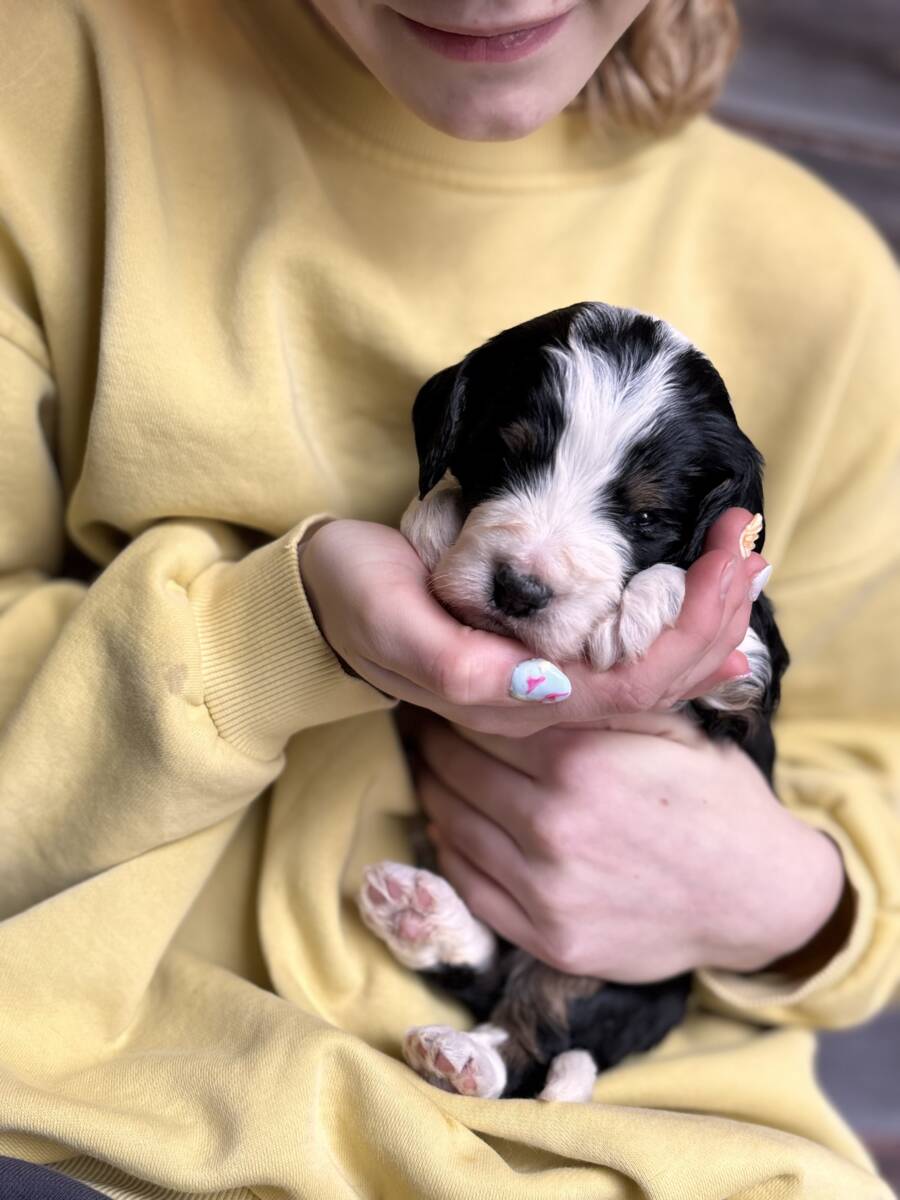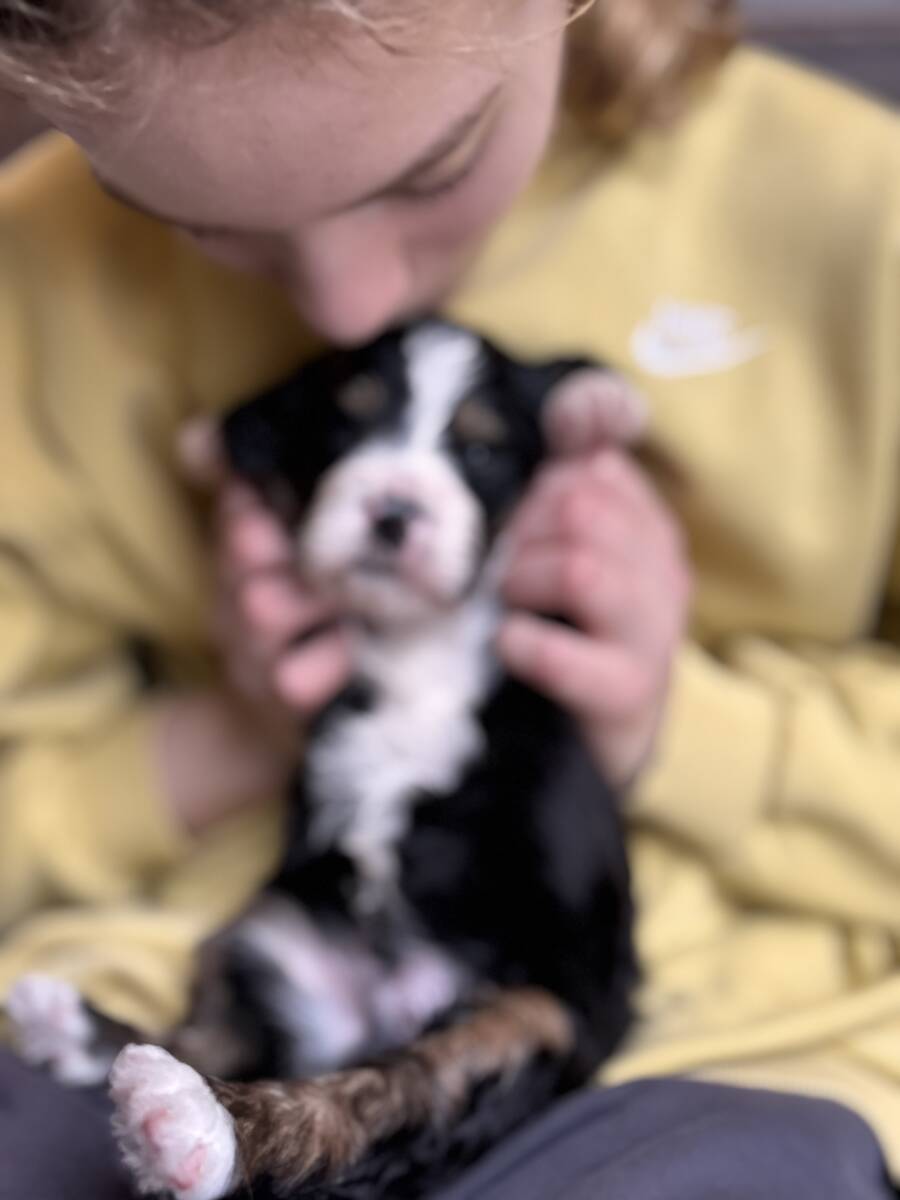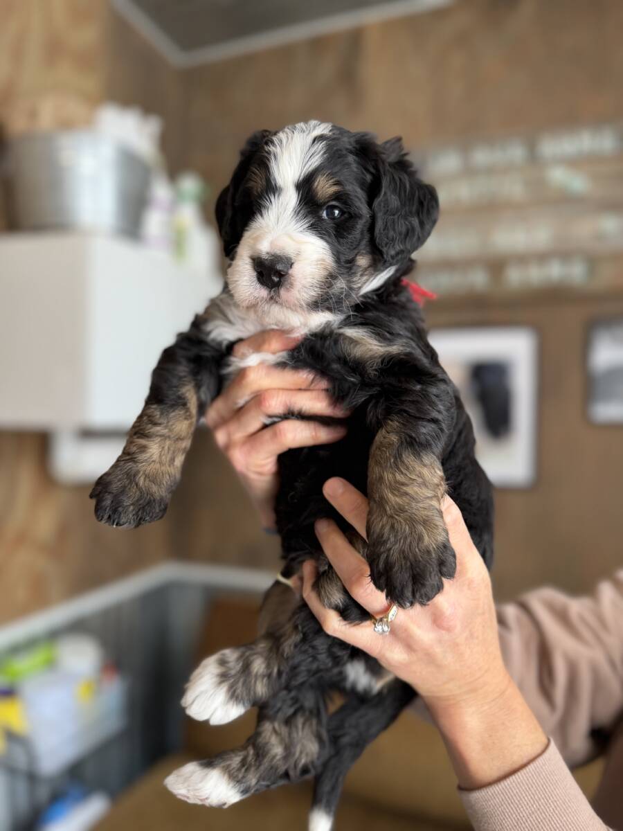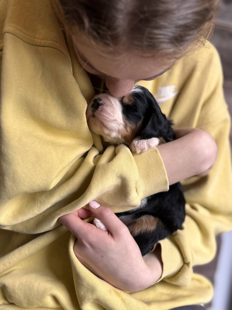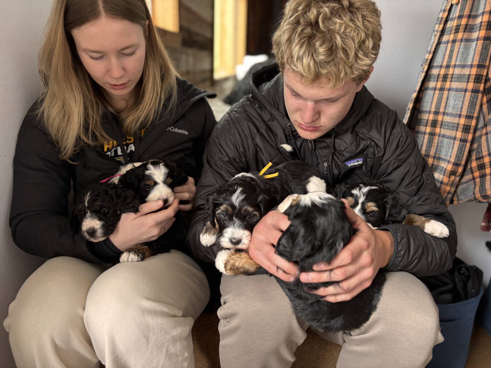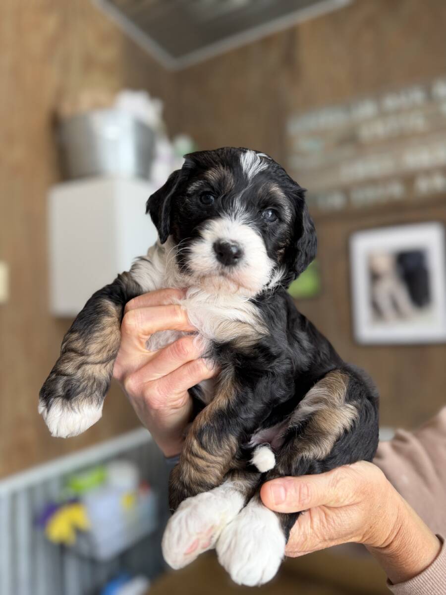 It has been so working with families this week to pick the best puppy for their home and now to have name for them for us to call them by! This week we will continue to have puppies spend naps in crates. Uecker has finished nursing to give puppies ample time to adjust to only eating dog food that we still soften. Puppies have their vet appointment Monday where they will have a full exam, vaccines, and be microchipped. Most potties are being done outside (unless we are distracted with visitors) and we are so excited for the sunshine and warmer temps that are coming to give puppies more time to play outside. We continue to give them time with our other dogs to help them become comfortable with other animals. We will begin to encourage puppies to sit when they greet us which is something that is so important to continue to reinforce once they come home. We are absolutely loving each puppy so much and can’t believe we are getting so close to take home!