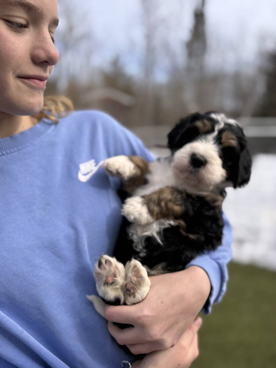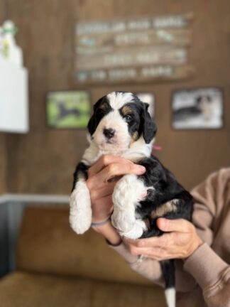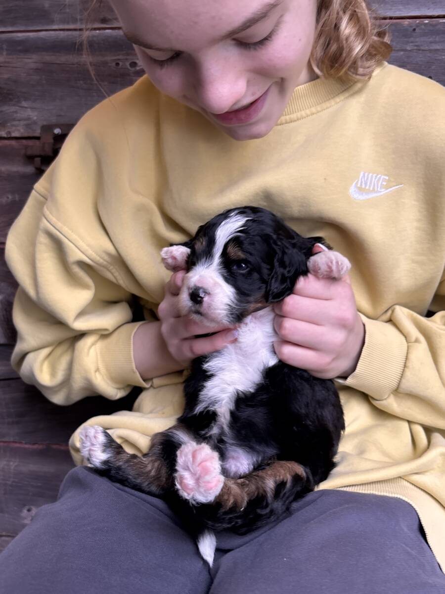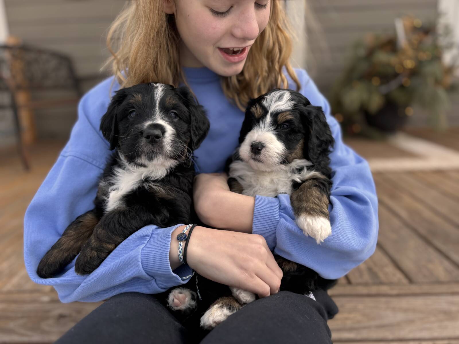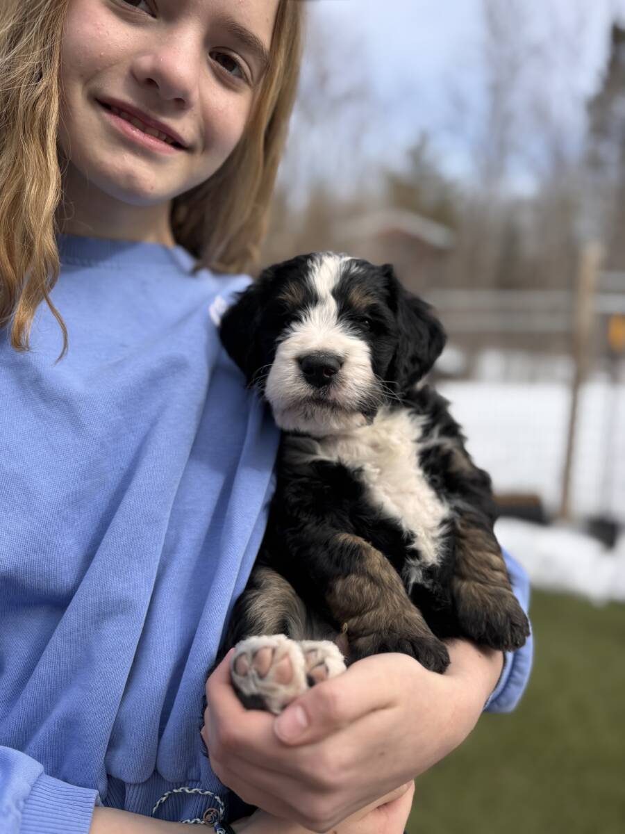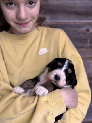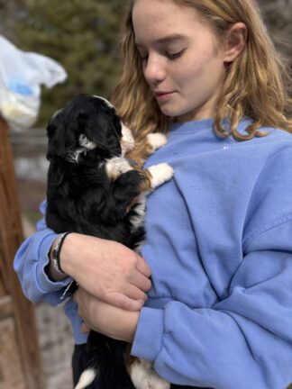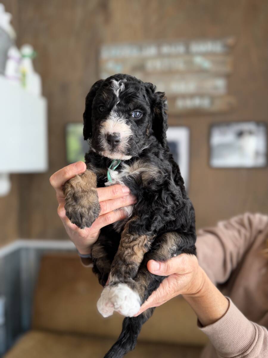 It has been so working with families this week to pick the best puppy for their home and now to have name for them for us to call them by! This week we will continue to have puppies spend naps in crates. Uecker has finished nursing to give puppies ample time to adjust to only eating dog food that we still soften. Puppies have their vet appointment Monday where they will have a full exam, vaccines, and be microchipped. Most potties are being done outside (unless we are distracted with visitors) and we are so excited for the sunshine and warmer temps that are coming to give puppies more time to play outside. We continue to give them time with our other dogs to help them become comfortable with other animals. We will begin to encourage puppies to sit when they greet us which is something that is so important to continue to reinforce once they come home. We are absolutely loving each puppy so much and can’t believe we are getting so close to take home!