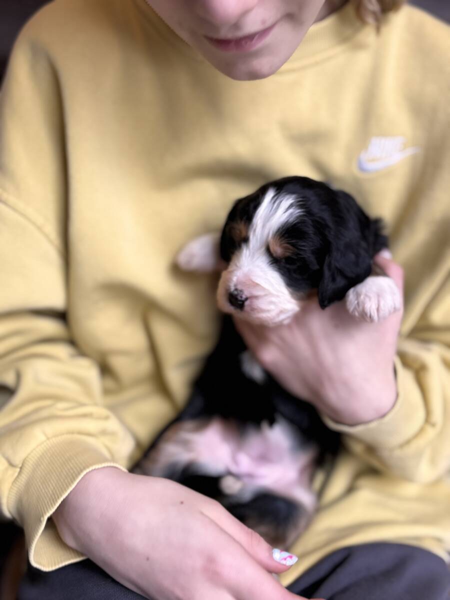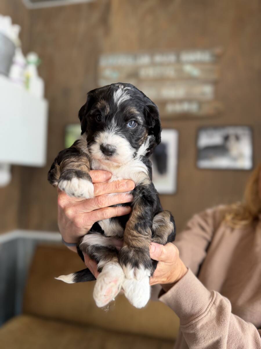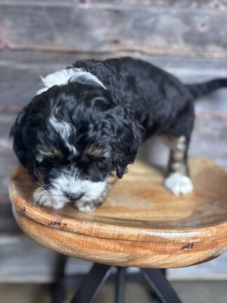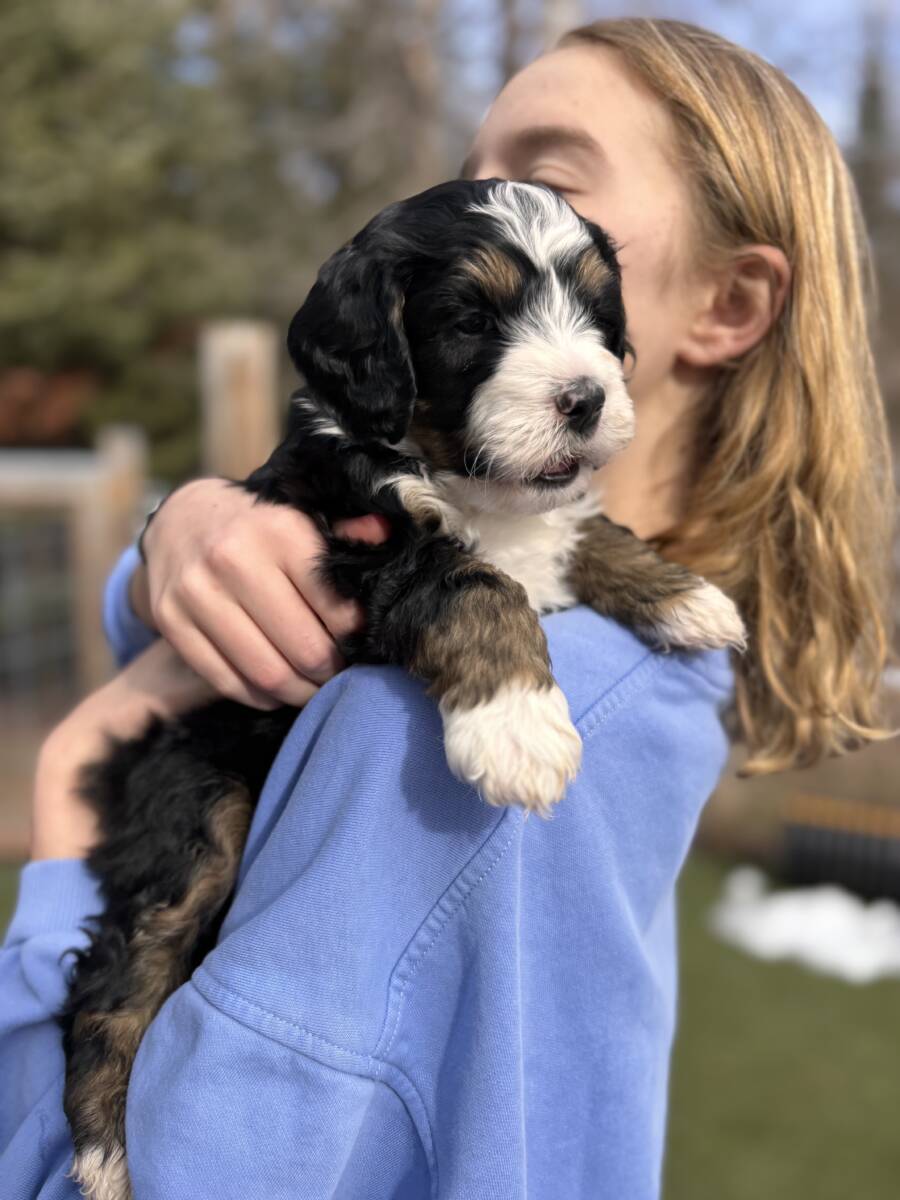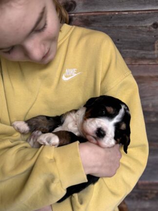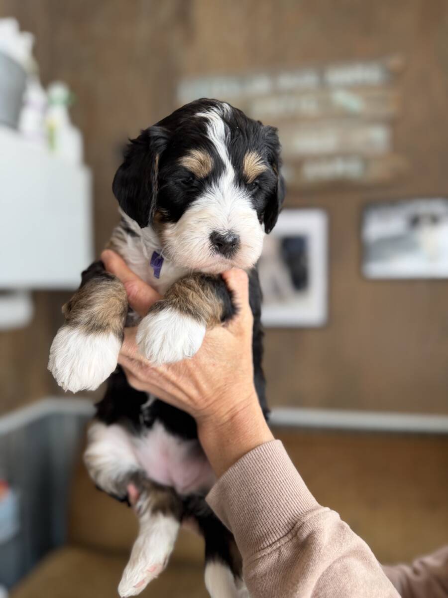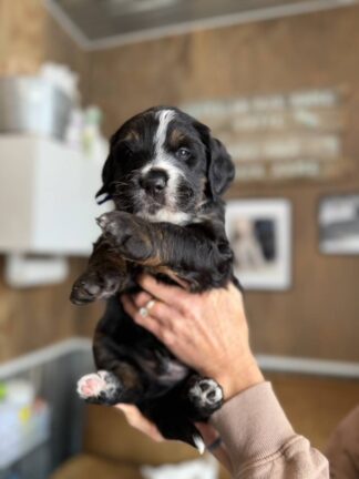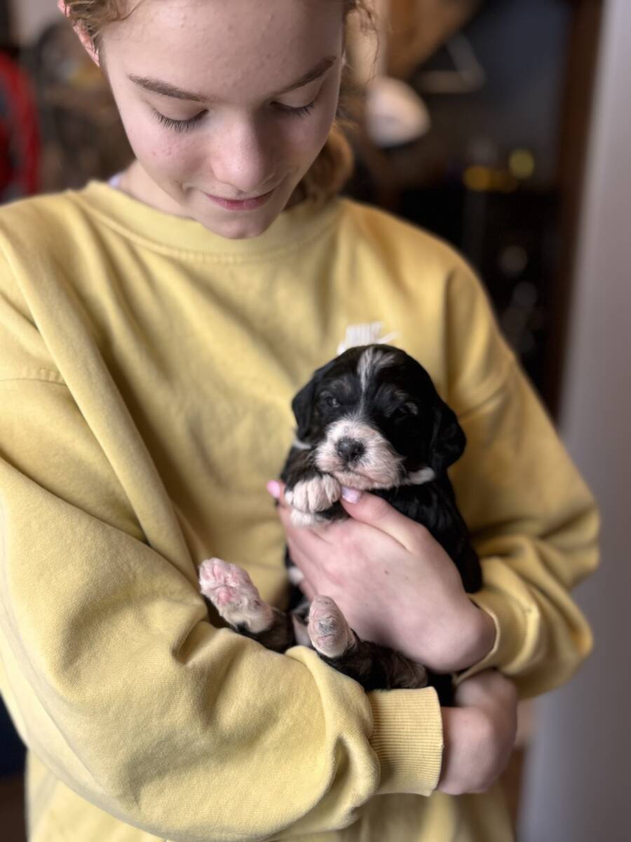 It has been so working with families this week to pick the best puppy for their home and now to have name for them for us to call them by! This week we will continue to have puppies spend naps in crates. Uecker has finished nursing to give puppies ample time to adjust to only eating dog food that we still soften. Puppies have their vet appointment Monday where they will have a full exam, vaccines, and be microchipped. Most potties are being done outside (unless we are distracted with visitors) and we are so excited for the sunshine and warmer temps that are coming to give puppies more time to play outside. We continue to give them time with our other dogs to help them become comfortable with other animals. We will begin to encourage puppies to sit when they greet us which is something that is so important to continue to reinforce once they come home. We are absolutely loving each puppy so much and can’t believe we are getting so close to take home!