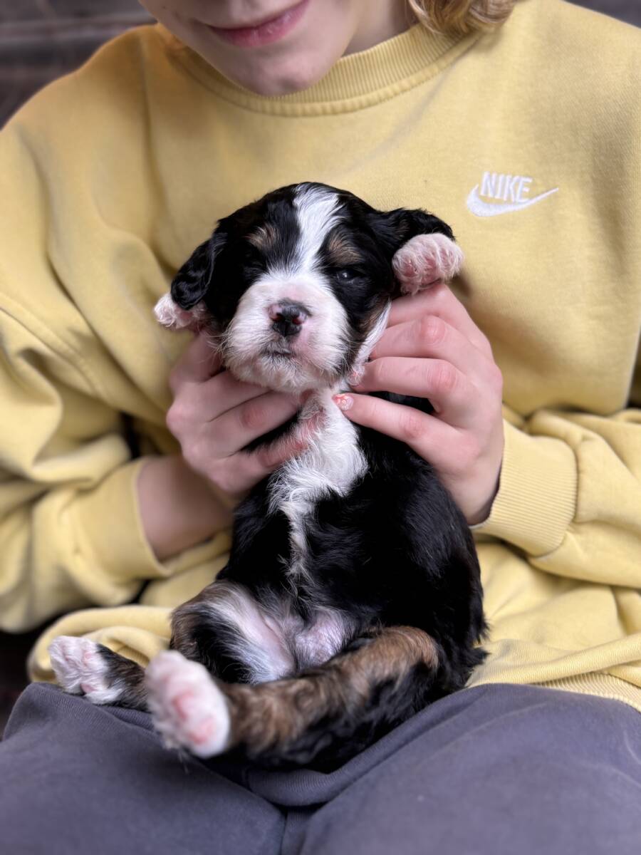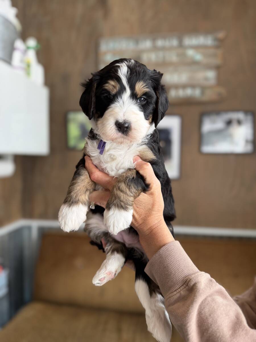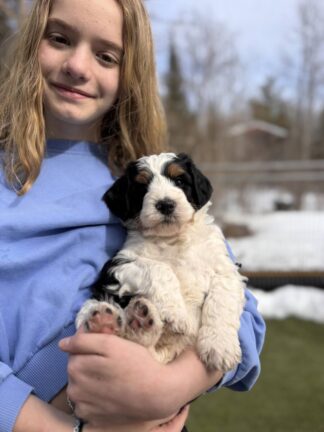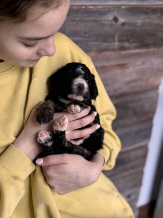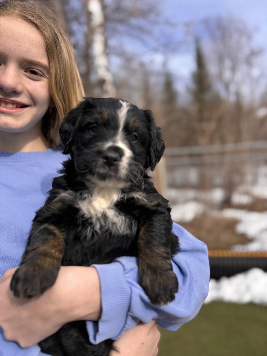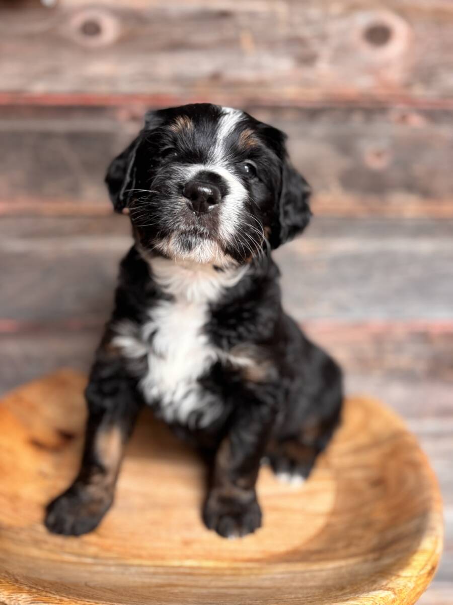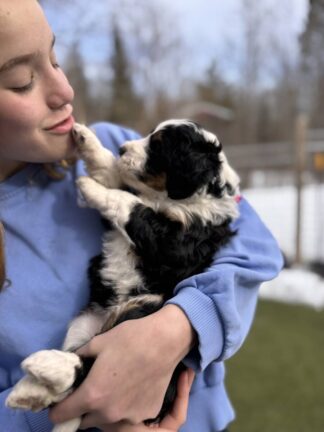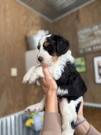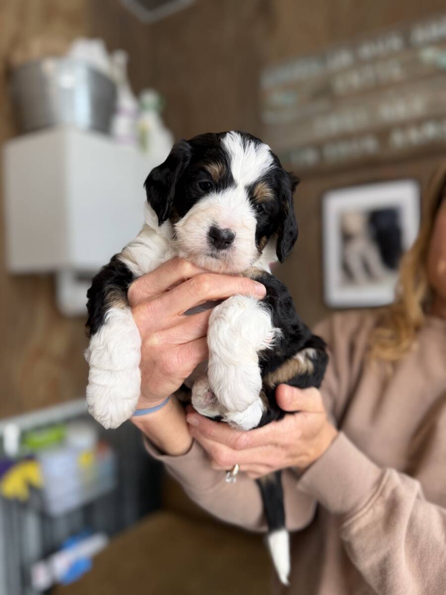 It has been so working with families this week to pick the best puppy for their home and now to have name for them for us to call them by! This week we will continue to have puppies spend naps in crates. Uecker has finished nursing to give puppies ample time to adjust to only eating dog food that we still soften. Puppies have their vet appointment Monday where they will have a full exam, vaccines, and be microchipped. Most potties are being done outside (unless we are distracted with visitors) and we are so excited for the sunshine and warmer temps that are coming to give puppies more time to play outside. We continue to give them time with our other dogs to help them become comfortable with other animals. We will begin to encourage puppies to sit when they greet us which is something that is so important to continue to reinforce once they come home. We are absolutely loving each puppy so much and can’t believe we are getting so close to take home!
