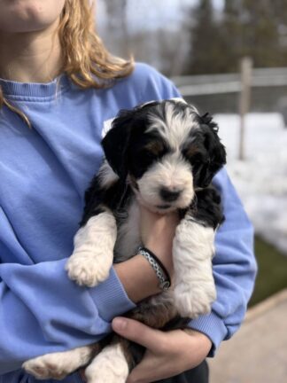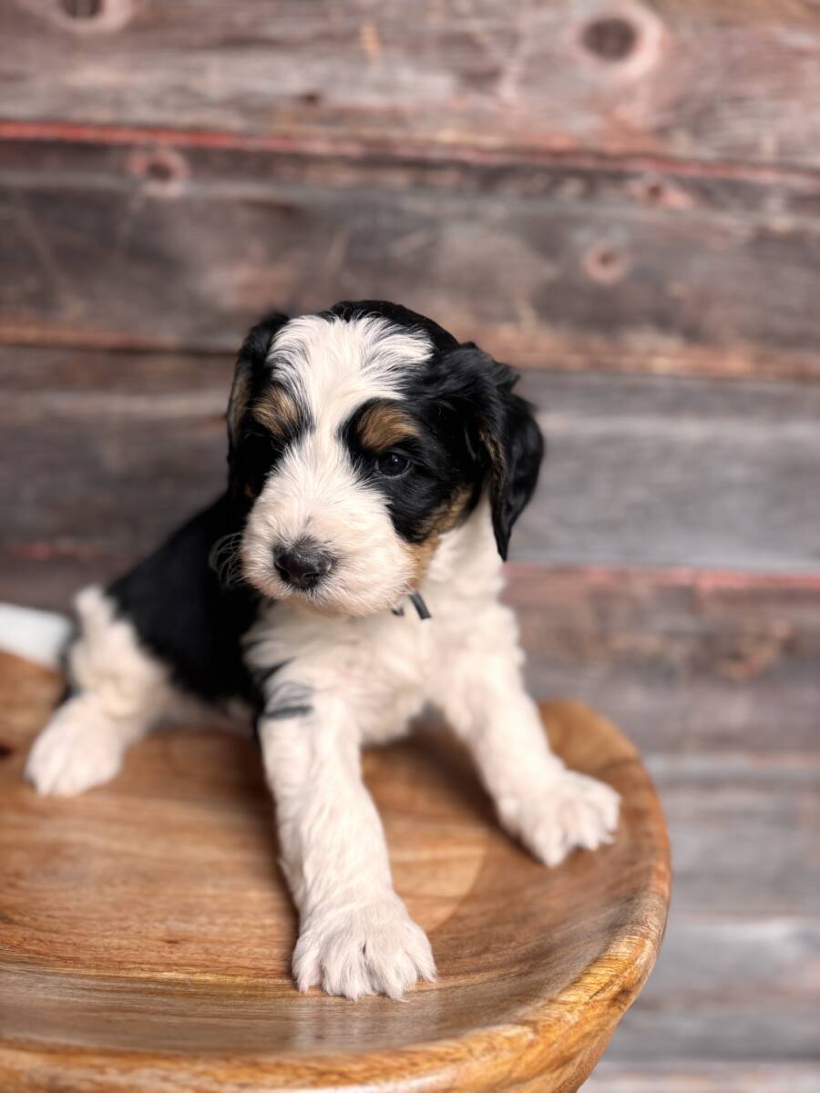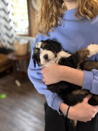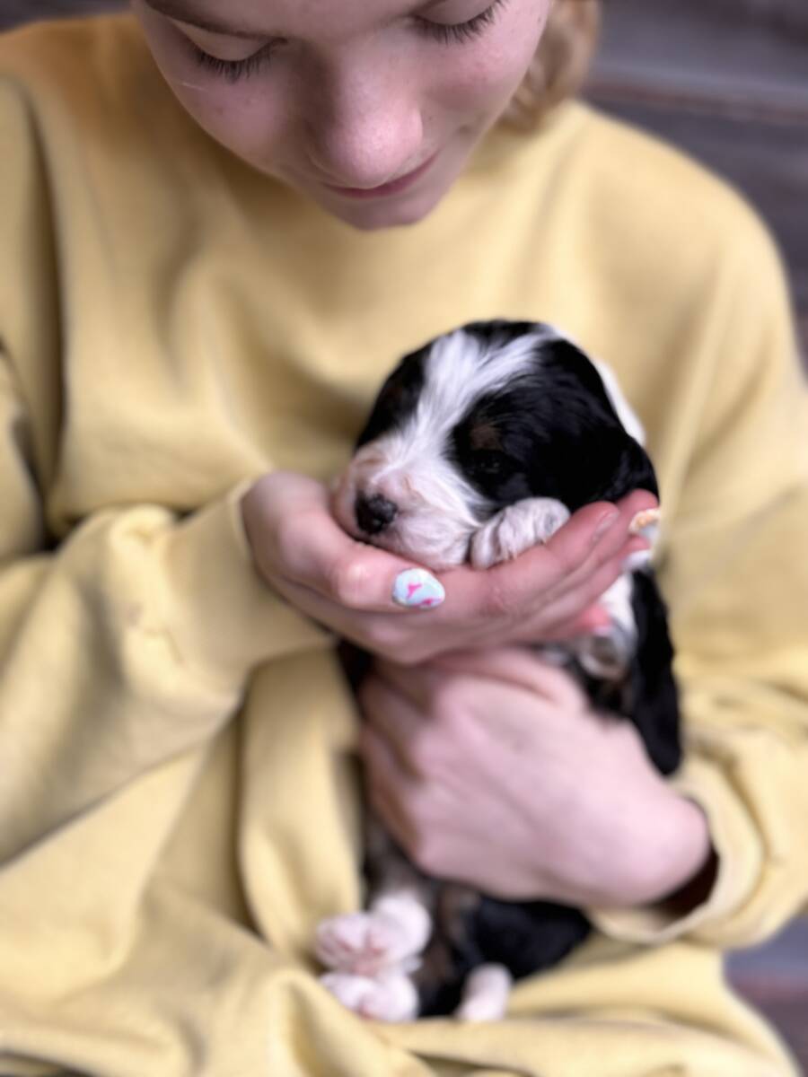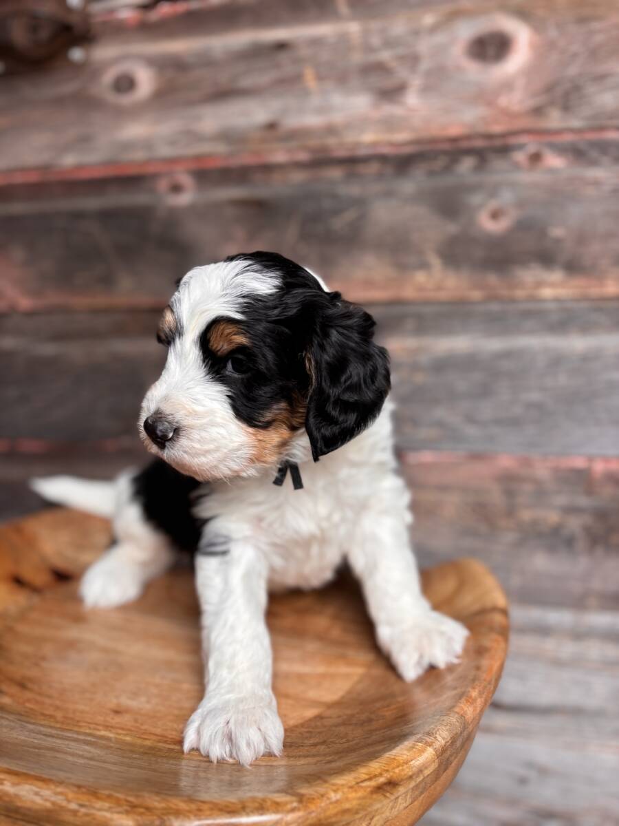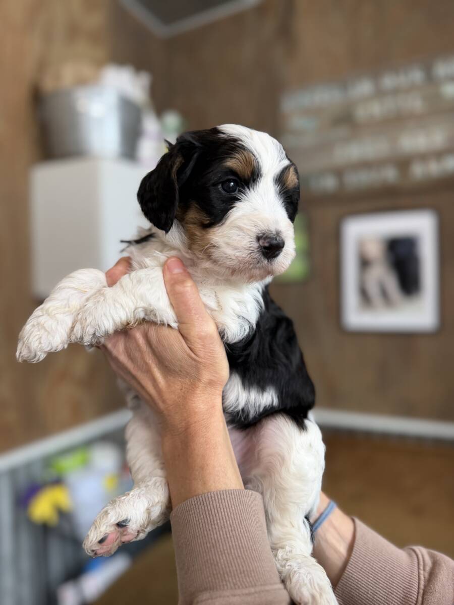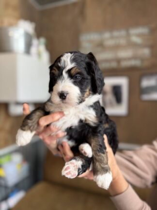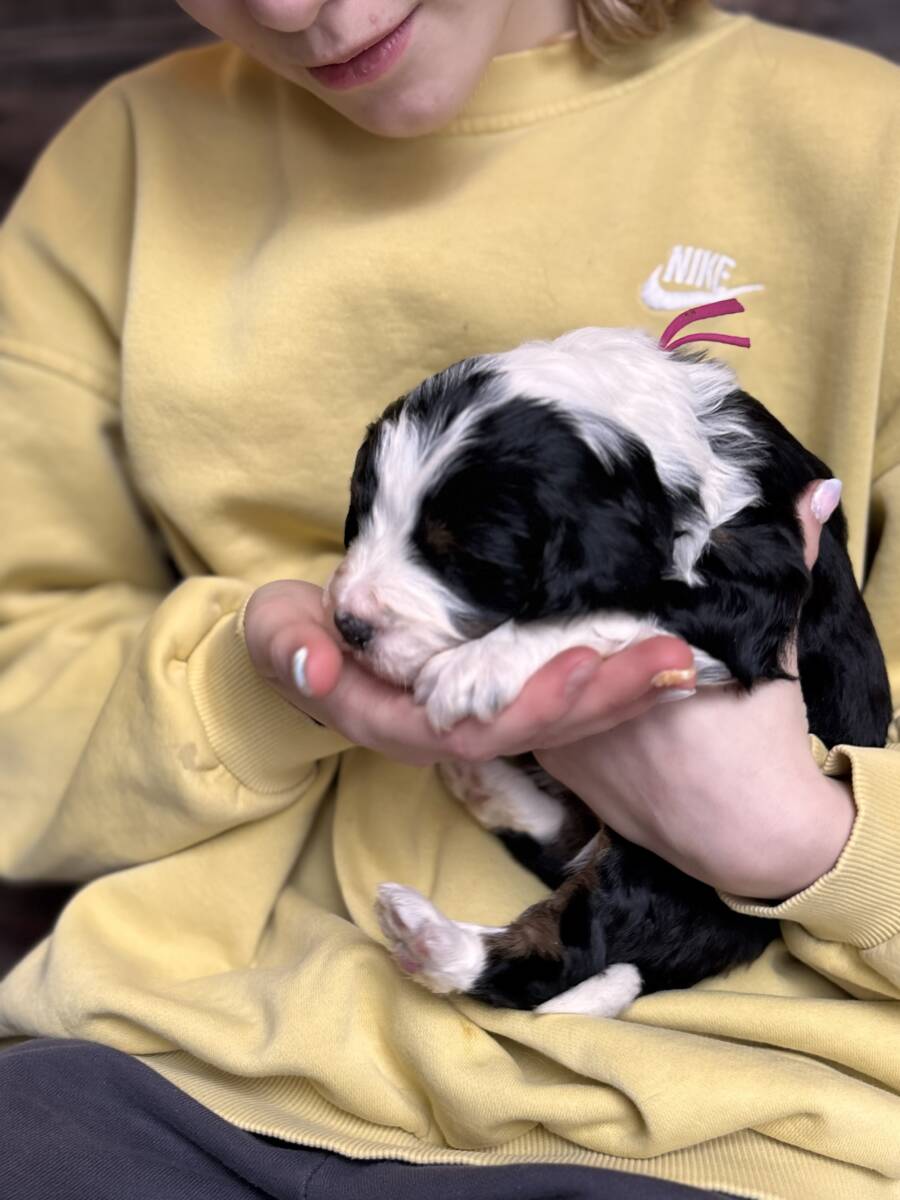 It has been so working with families this week to pick the best puppy for their home and now to have name for them for us to call them by! This week we will continue to have puppies spend naps in crates. Uecker has finished nursing to give puppies ample time to adjust to only eating dog food that we still soften. Puppies have their vet appointment Monday where they will have a full exam, vaccines, and be microchipped. Most potties are being done outside (unless we are distracted with visitors) and we are so excited for the sunshine and warmer temps that are coming to give puppies more time to play outside. We continue to give them time with our other dogs to help them become comfortable with other animals. We will begin to encourage puppies to sit when they greet us which is something that is so important to continue to reinforce once they come home. We are absolutely loving each puppy so much and can’t believe we are getting so close to take home!