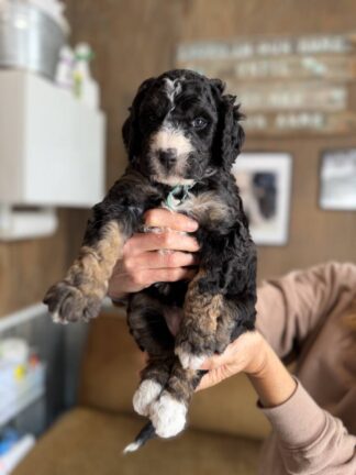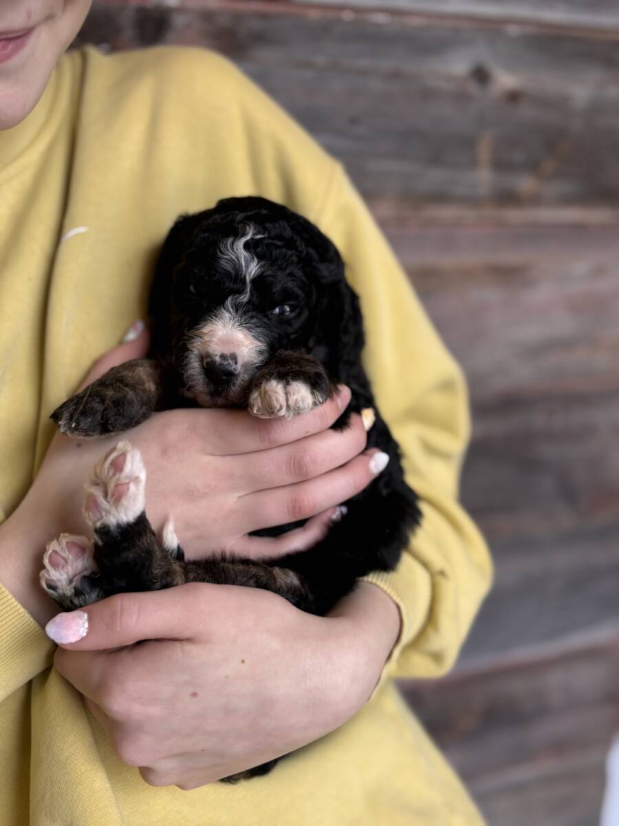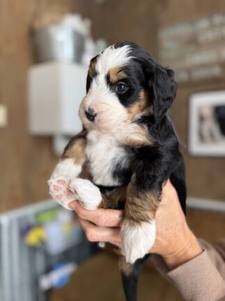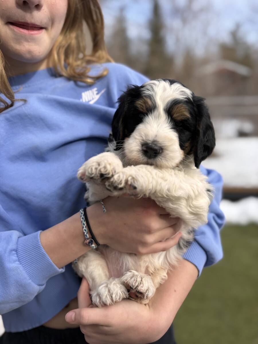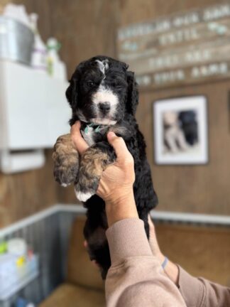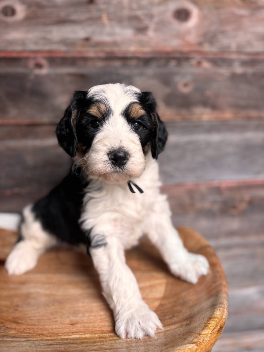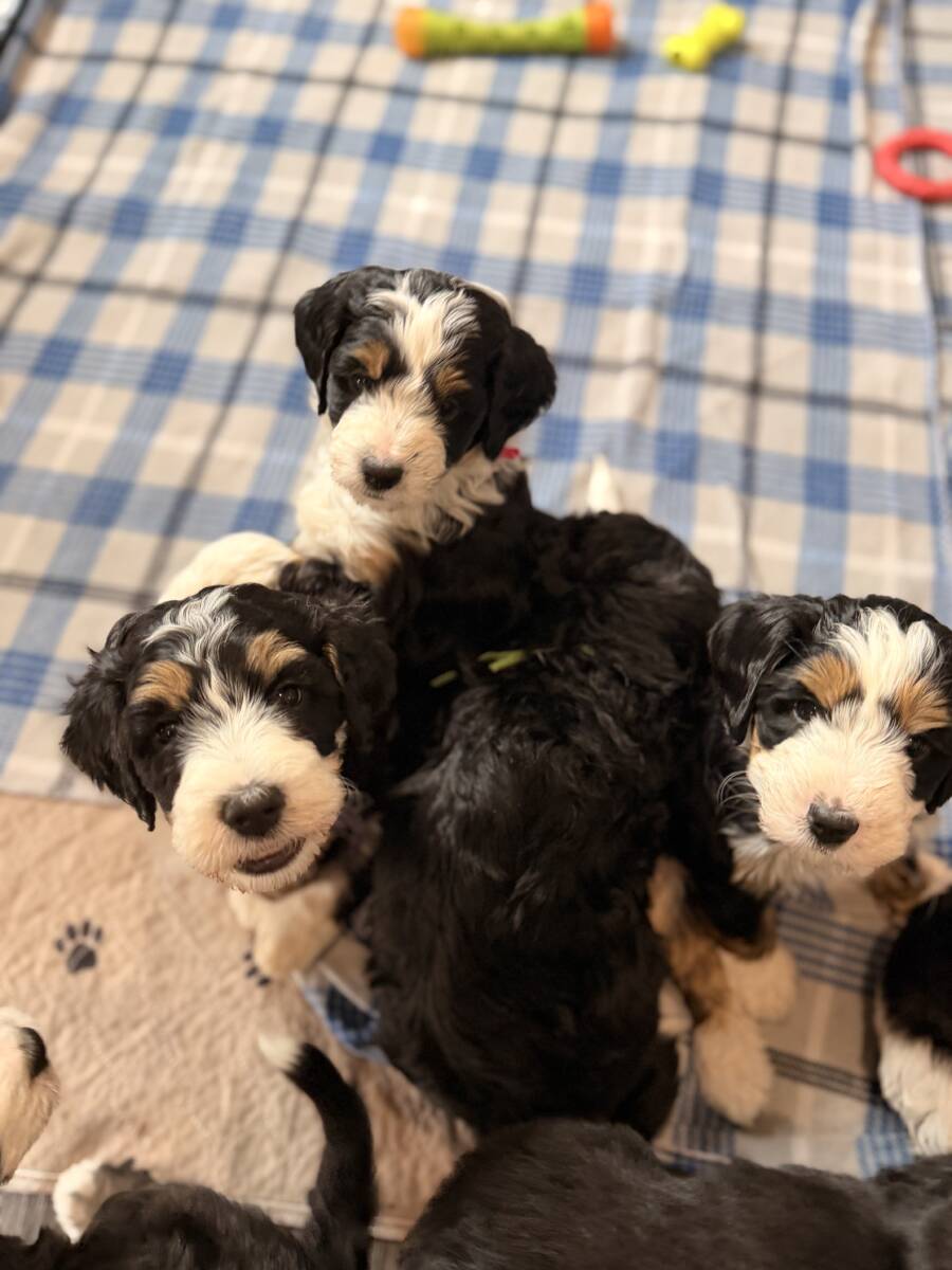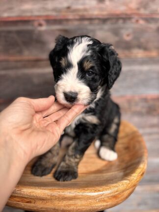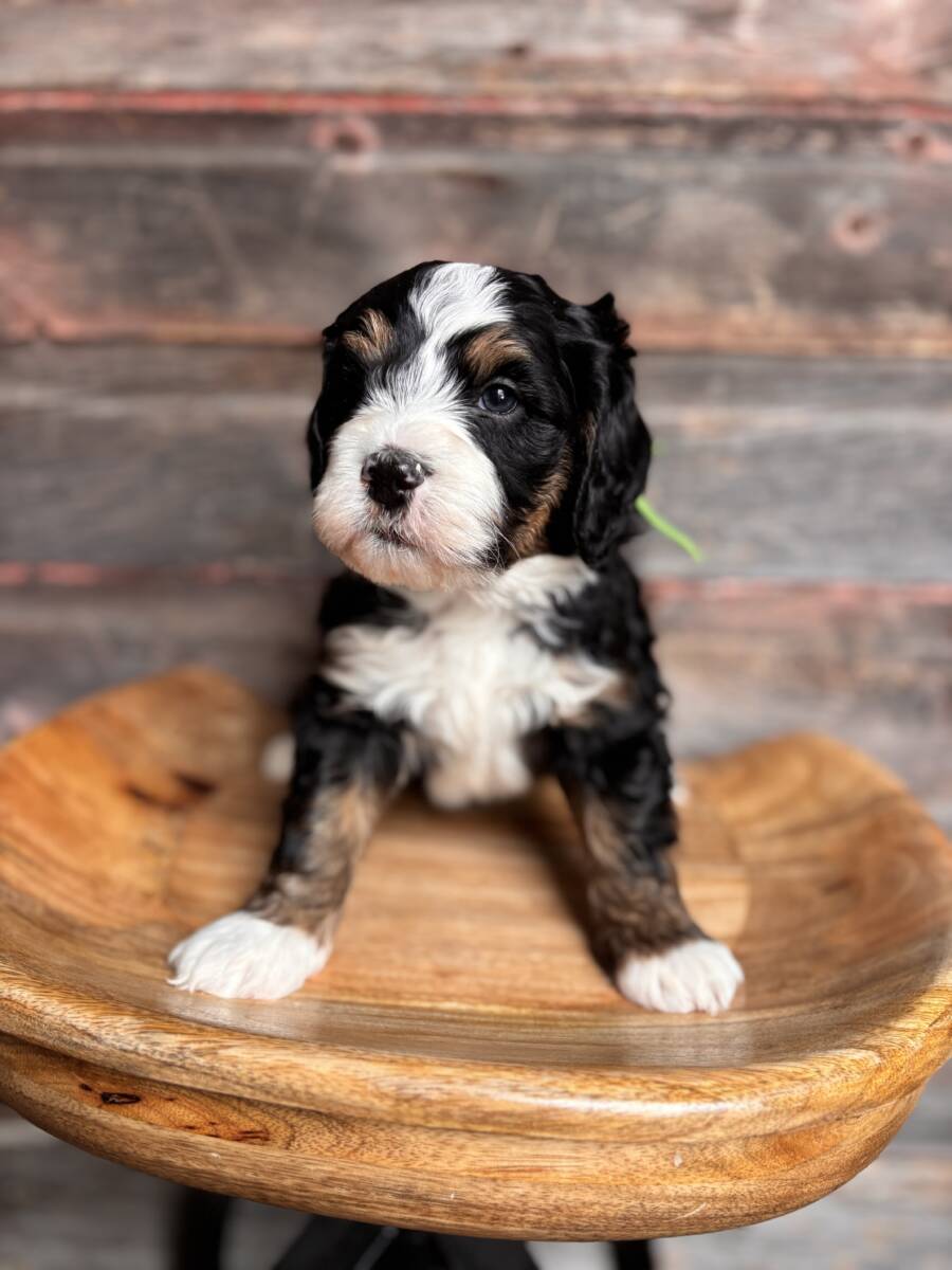 It has been so working with families this week to pick the best puppy for their home and now to have name for them for us to call them by! This week we will continue to have puppies spend naps in crates. Uecker has finished nursing to give puppies ample time to adjust to only eating dog food that we still soften. Puppies have their vet appointment Monday where they will have a full exam, vaccines, and be microchipped. Most potties are being done outside (unless we are distracted with visitors) and we are so excited for the sunshine and warmer temps that are coming to give puppies more time to play outside. We continue to give them time with our other dogs to help them become comfortable with other animals. We will begin to encourage puppies to sit when they greet us which is something that is so important to continue to reinforce once they come home. We are absolutely loving each puppy so much and can’t believe we are getting so close to take home!