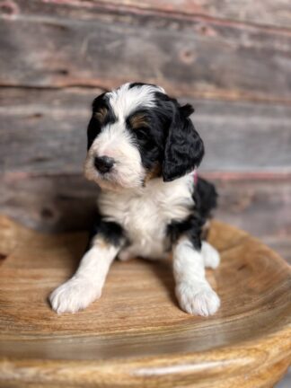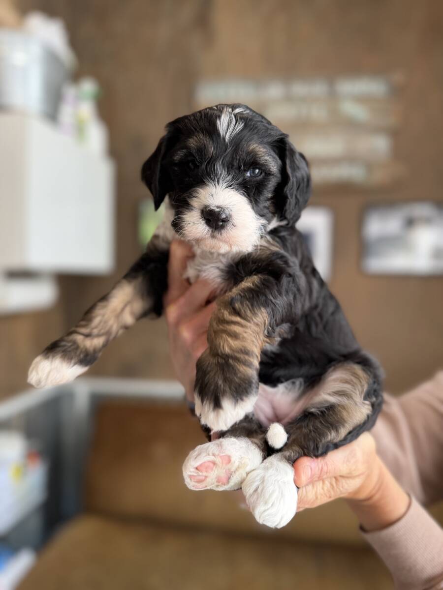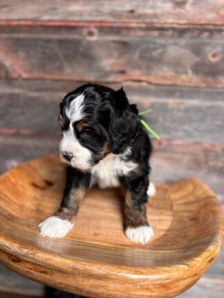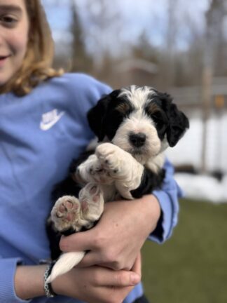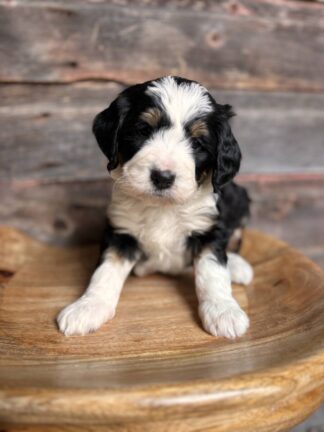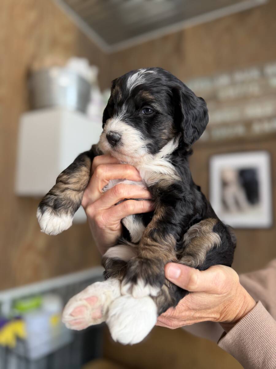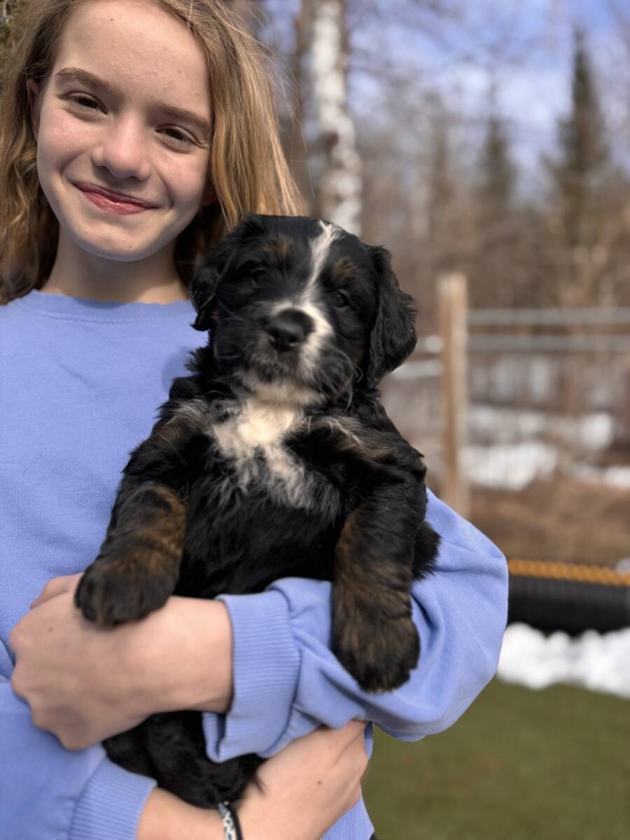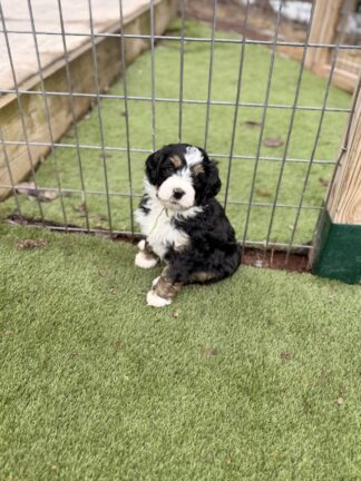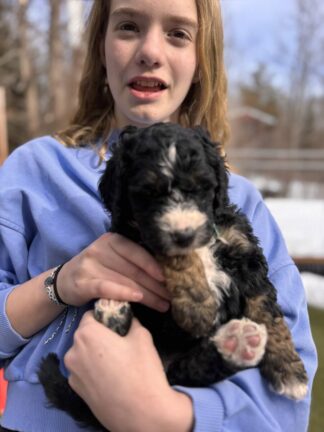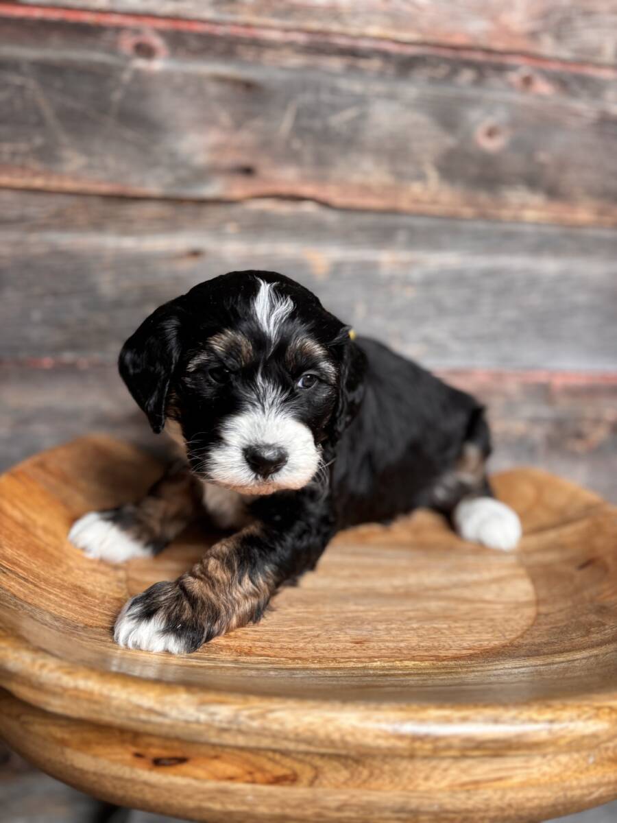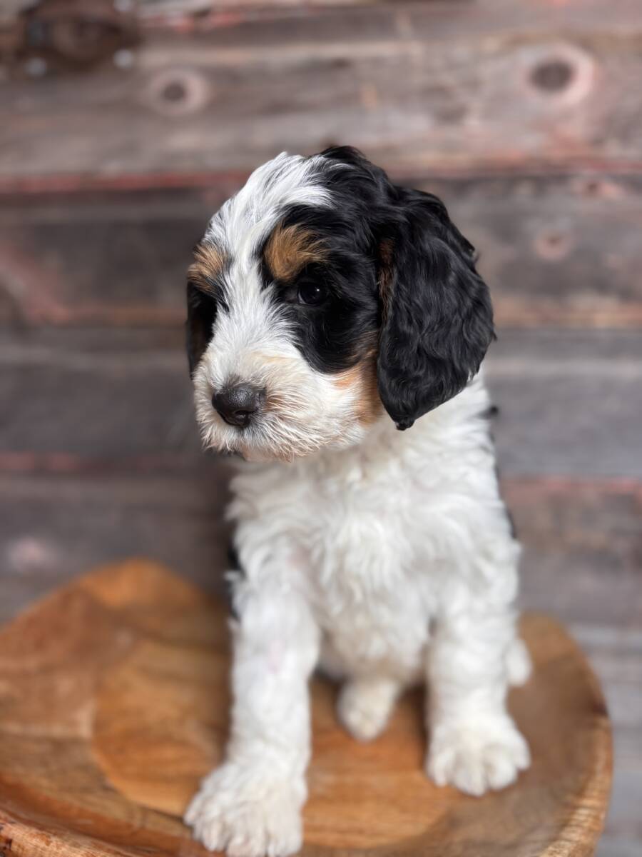 It has been so working with families this week to pick the best puppy for their home and now to have name for them for us to call them by! This week we will continue to have puppies spend naps in crates. Uecker has finished nursing to give puppies ample time to adjust to only eating dog food that we still soften. Puppies have their vet appointment Monday where they will have a full exam, vaccines, and be microchipped. Most potties are being done outside (unless we are distracted with visitors) and we are so excited for the sunshine and warmer temps that are coming to give puppies more time to play outside. We continue to give them time with our other dogs to help them become comfortable with other animals. We will begin to encourage puppies to sit when they greet us which is something that is so important to continue to reinforce once they come home. We are absolutely loving each puppy so much and can’t believe we are getting so close to take home!