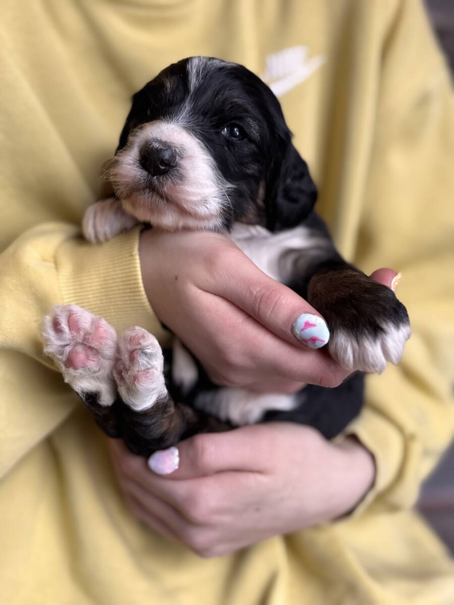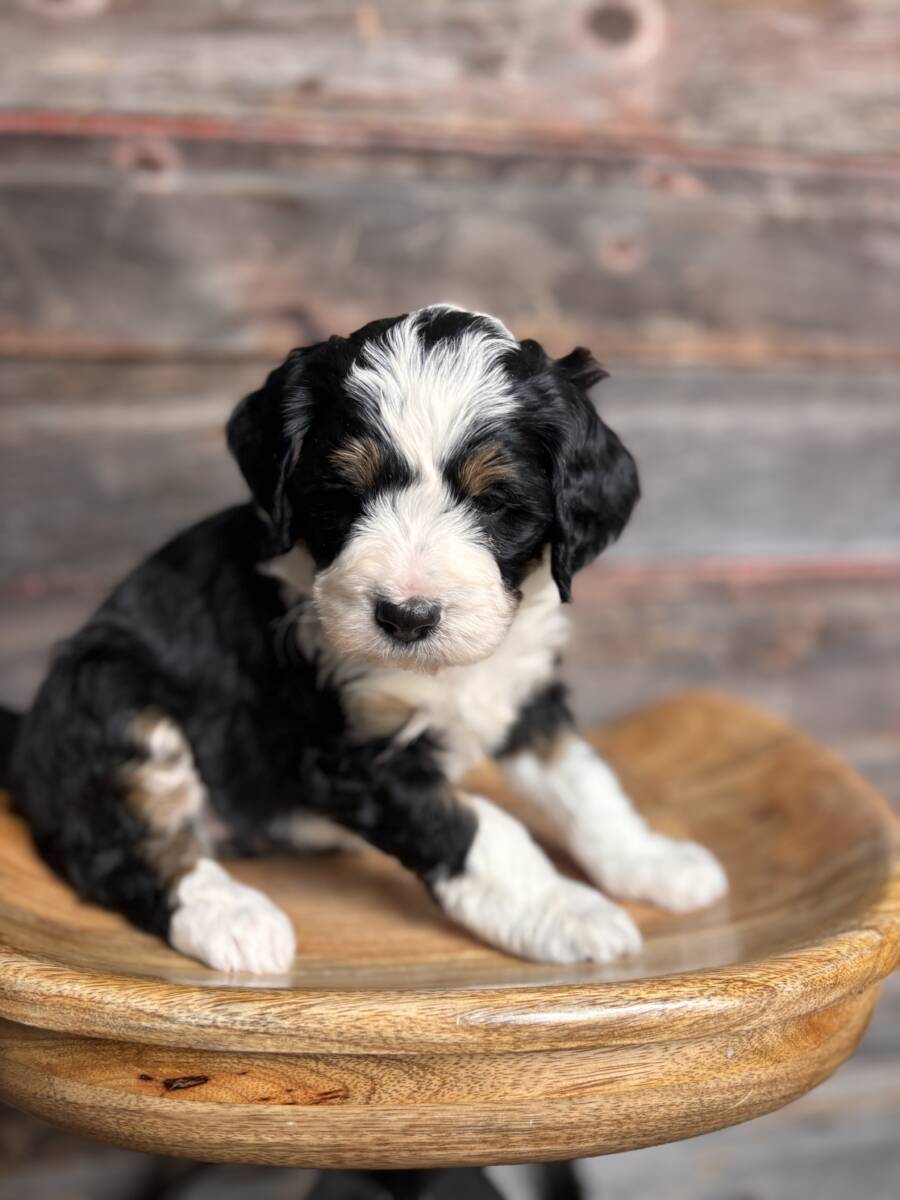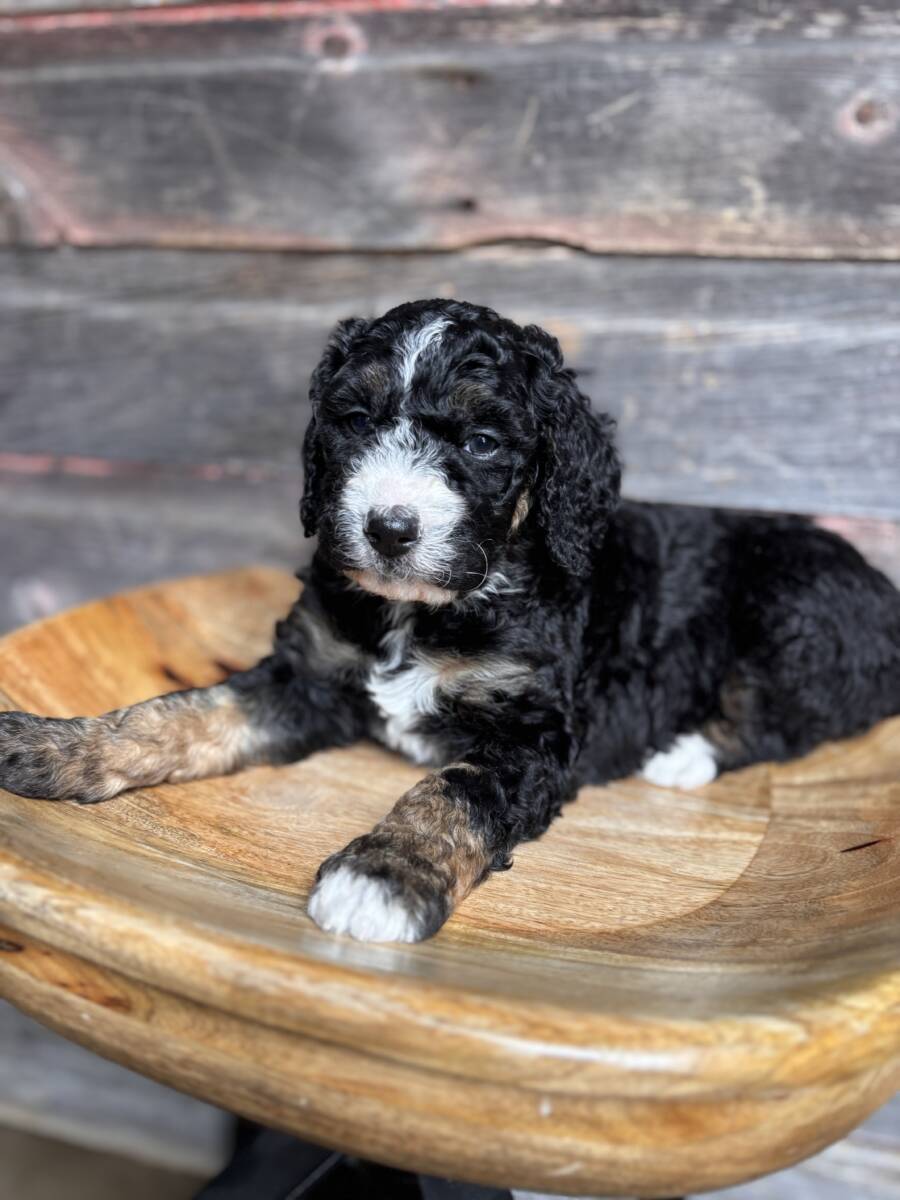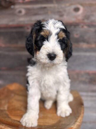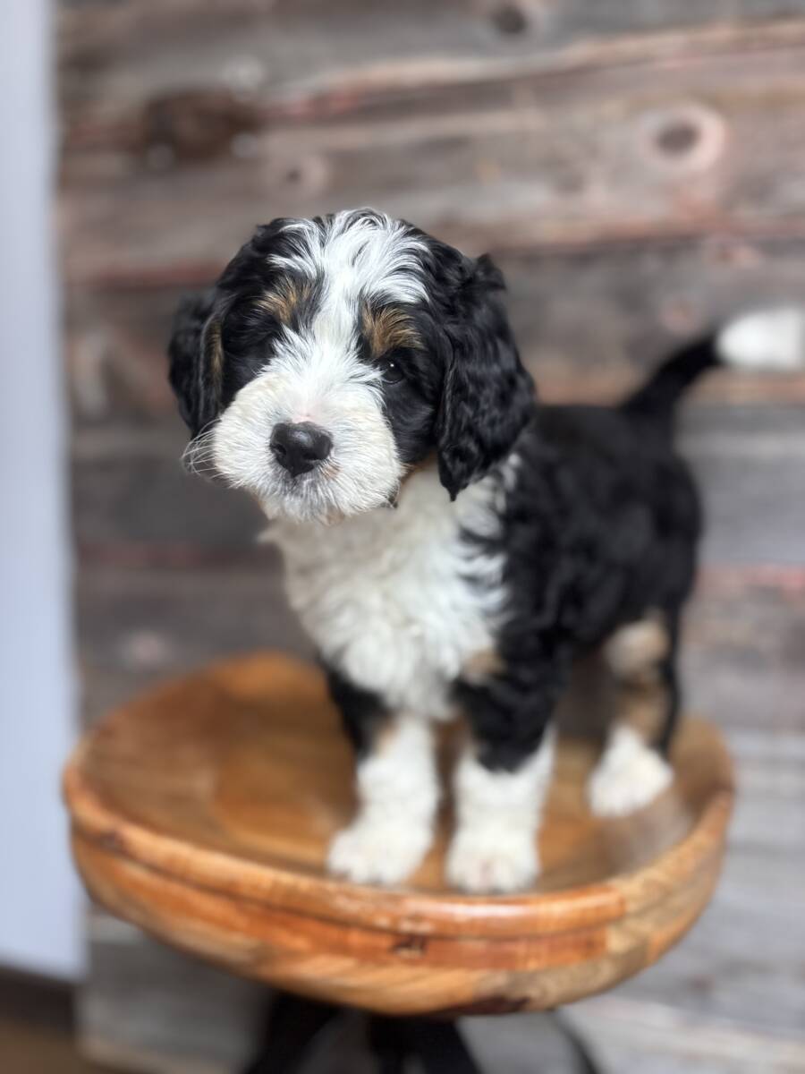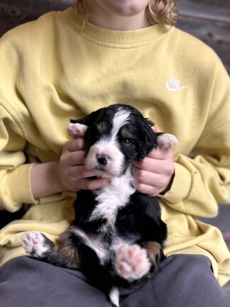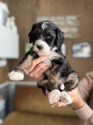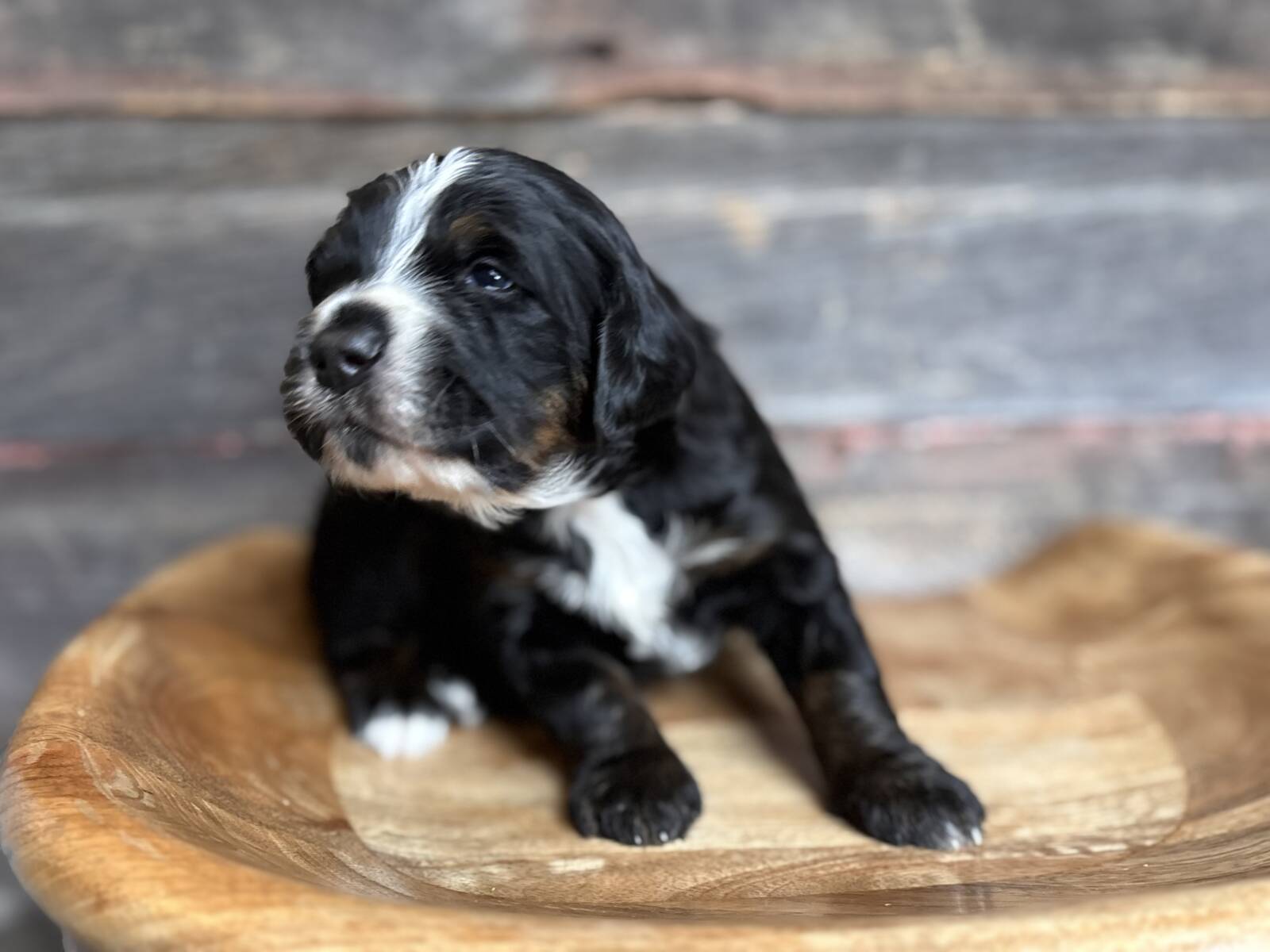 It has been so working with families this week to pick the best puppy for their home and now to have name for them for us to call them by! This week we will continue to have puppies spend naps in crates. Uecker has finished nursing to give puppies ample time to adjust to only eating dog food that we still soften. Puppies have their vet appointment Monday where they will have a full exam, vaccines, and be microchipped. Most potties are being done outside (unless we are distracted with visitors) and we are so excited for the sunshine and warmer temps that are coming to give puppies more time to play outside. We continue to give them time with our other dogs to help them become comfortable with other animals. We will begin to encourage puppies to sit when they greet us which is something that is so important to continue to reinforce once they come home. We are absolutely loving each puppy so much and can’t believe we are getting so close to take home!