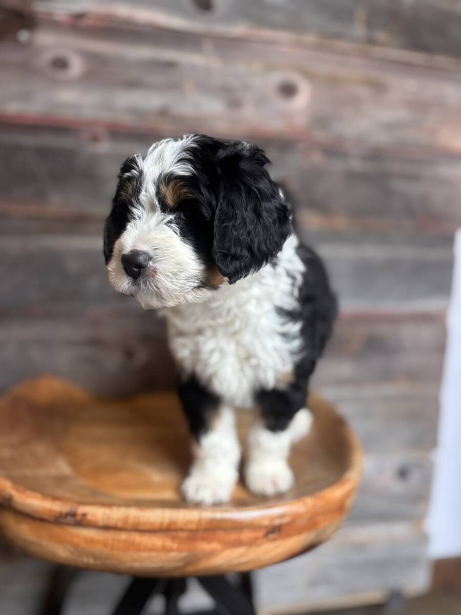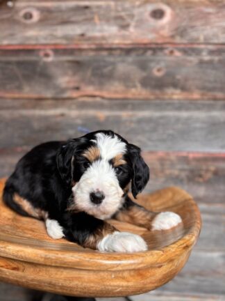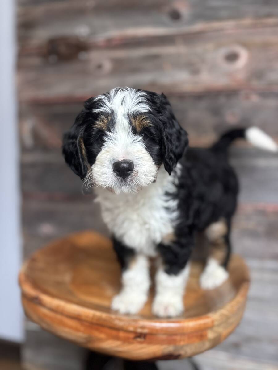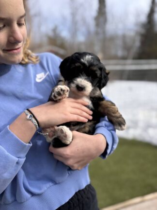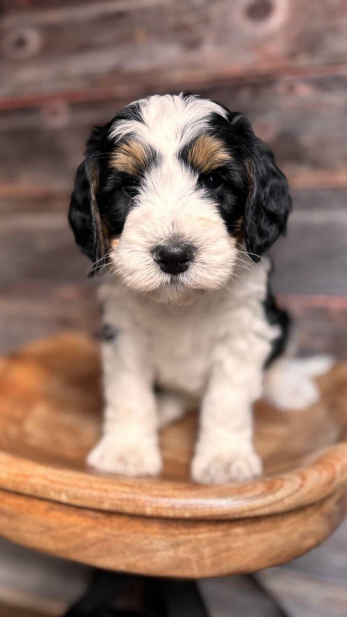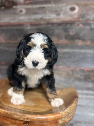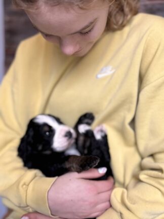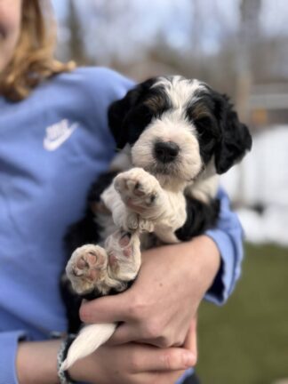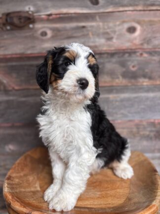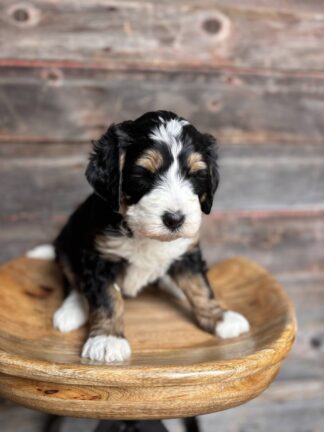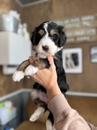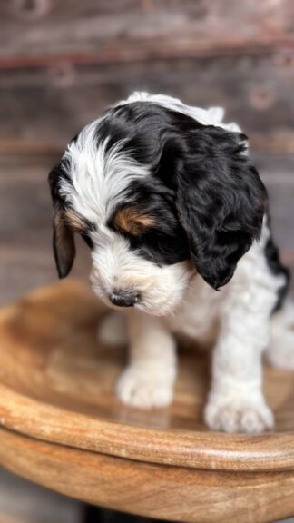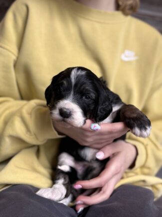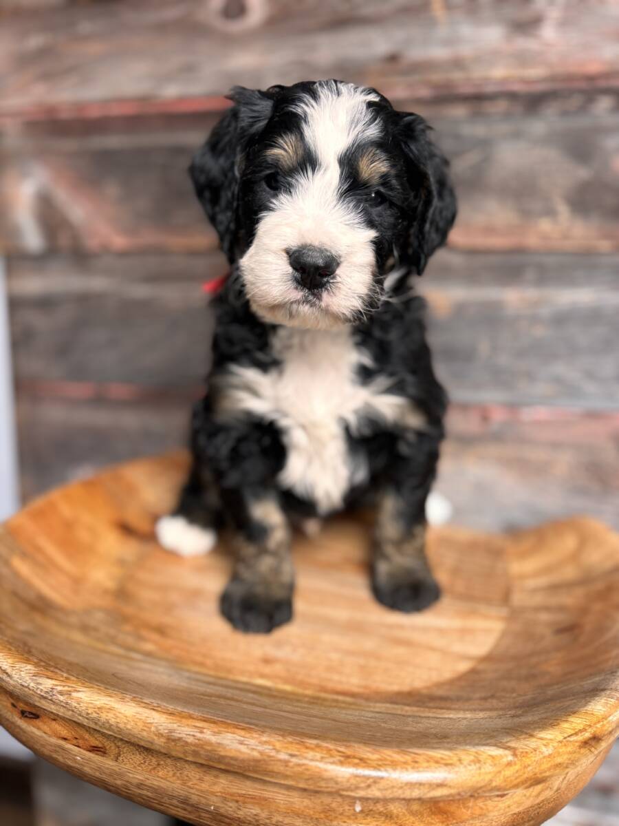 It has been so working with families this week to pick the best puppy for their home and now to have name for them for us to call them by! This week we will continue to have puppies spend naps in crates. Uecker has finished nursing to give puppies ample time to adjust to only eating dog food that we still soften. Puppies have their vet appointment Monday where they will have a full exam, vaccines, and be microchipped. Most potties are being done outside (unless we are distracted with visitors) and we are so excited for the sunshine and warmer temps that are coming to give puppies more time to play outside. We continue to give them time with our other dogs to help them become comfortable with other animals. We will begin to encourage puppies to sit when they greet us which is something that is so important to continue to reinforce once they come home. We are absolutely loving each puppy so much and can’t believe we are getting so close to take home!