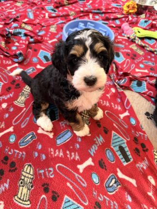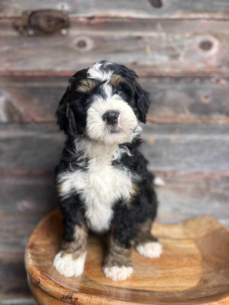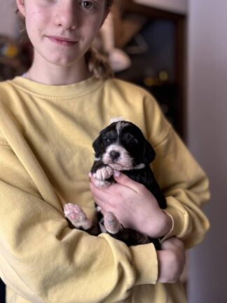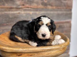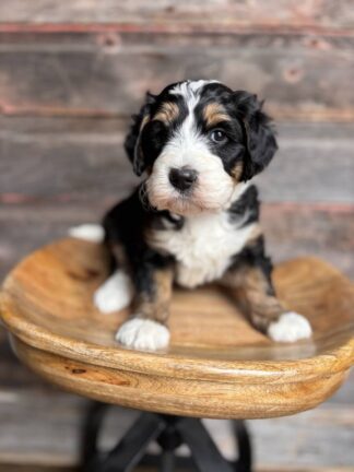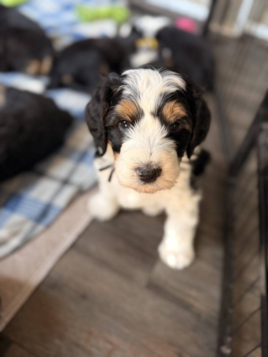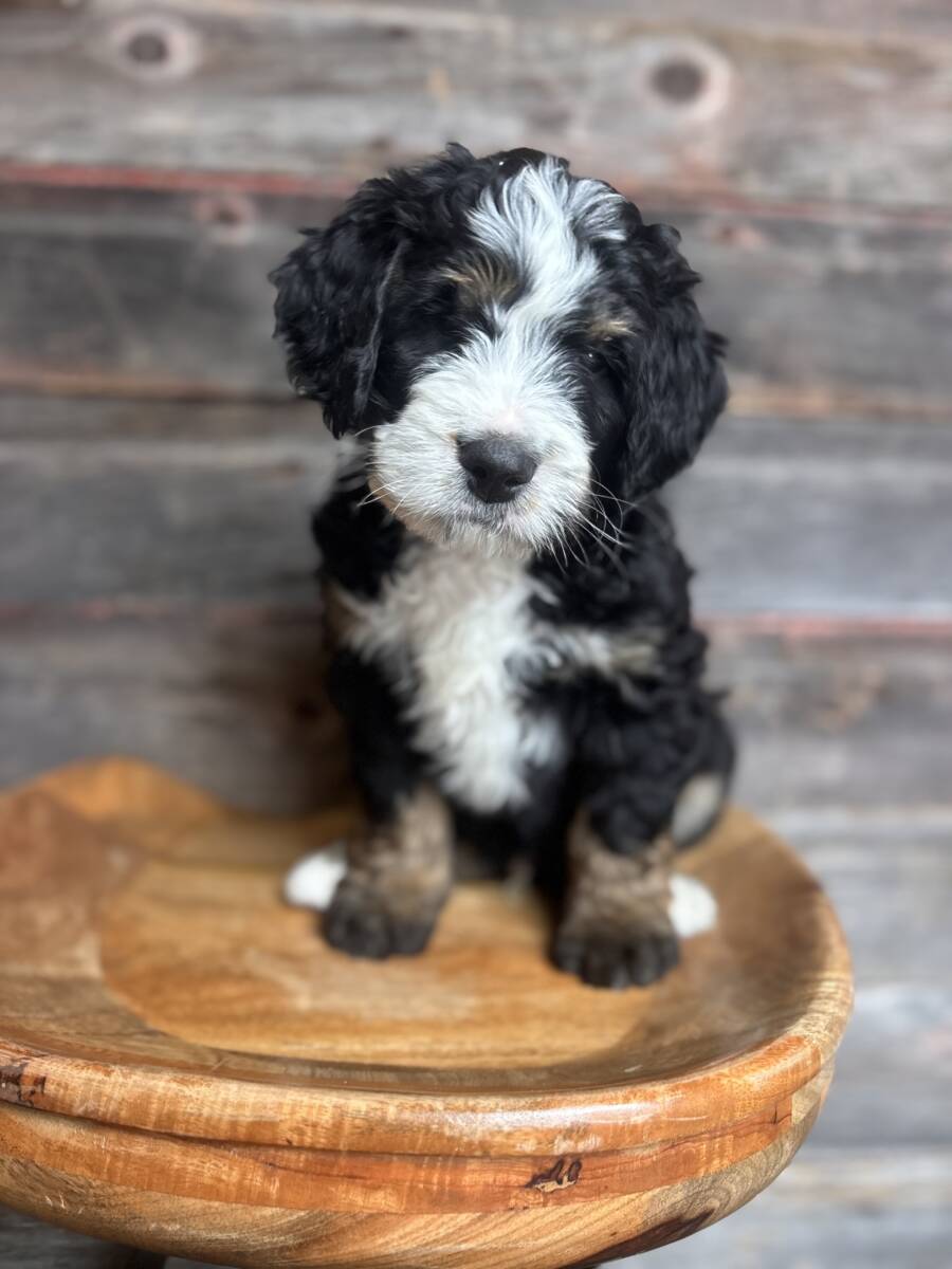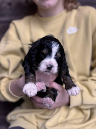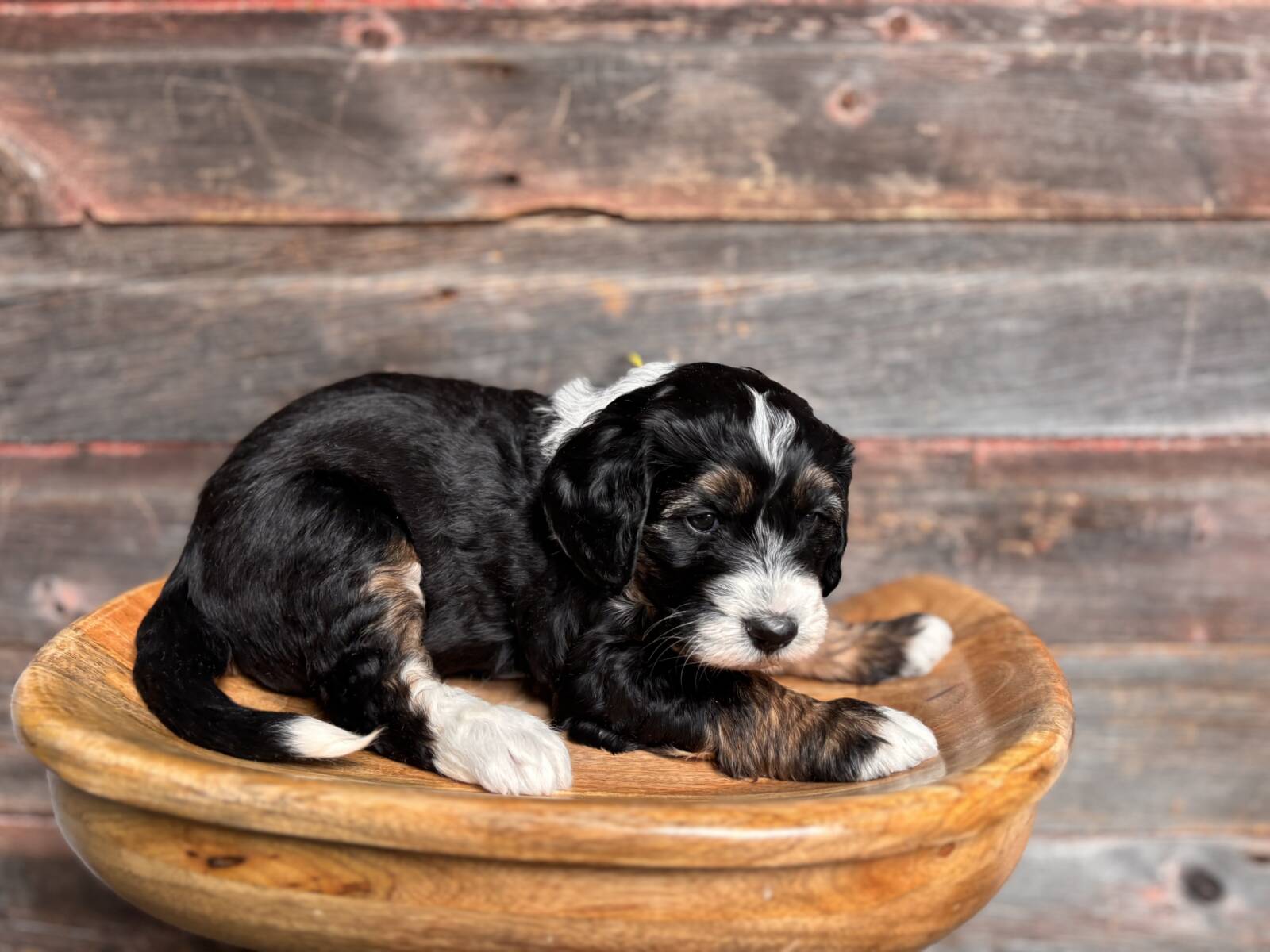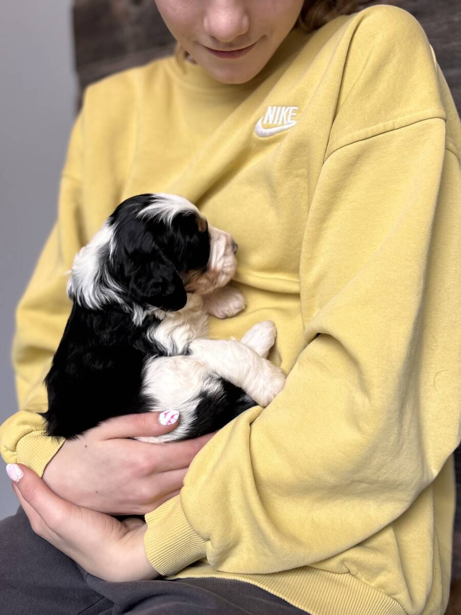 It has been so working with families this week to pick the best puppy for their home and now to have name for them for us to call them by! This week we will continue to have puppies spend naps in crates. Uecker has finished nursing to give puppies ample time to adjust to only eating dog food that we still soften. Puppies have their vet appointment Monday where they will have a full exam, vaccines, and be microchipped. Most potties are being done outside (unless we are distracted with visitors) and we are so excited for the sunshine and warmer temps that are coming to give puppies more time to play outside. We continue to give them time with our other dogs to help them become comfortable with other animals. We will begin to encourage puppies to sit when they greet us which is something that is so important to continue to reinforce once they come home. We are absolutely loving each puppy so much and can’t believe we are getting so close to take home!