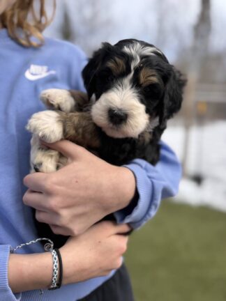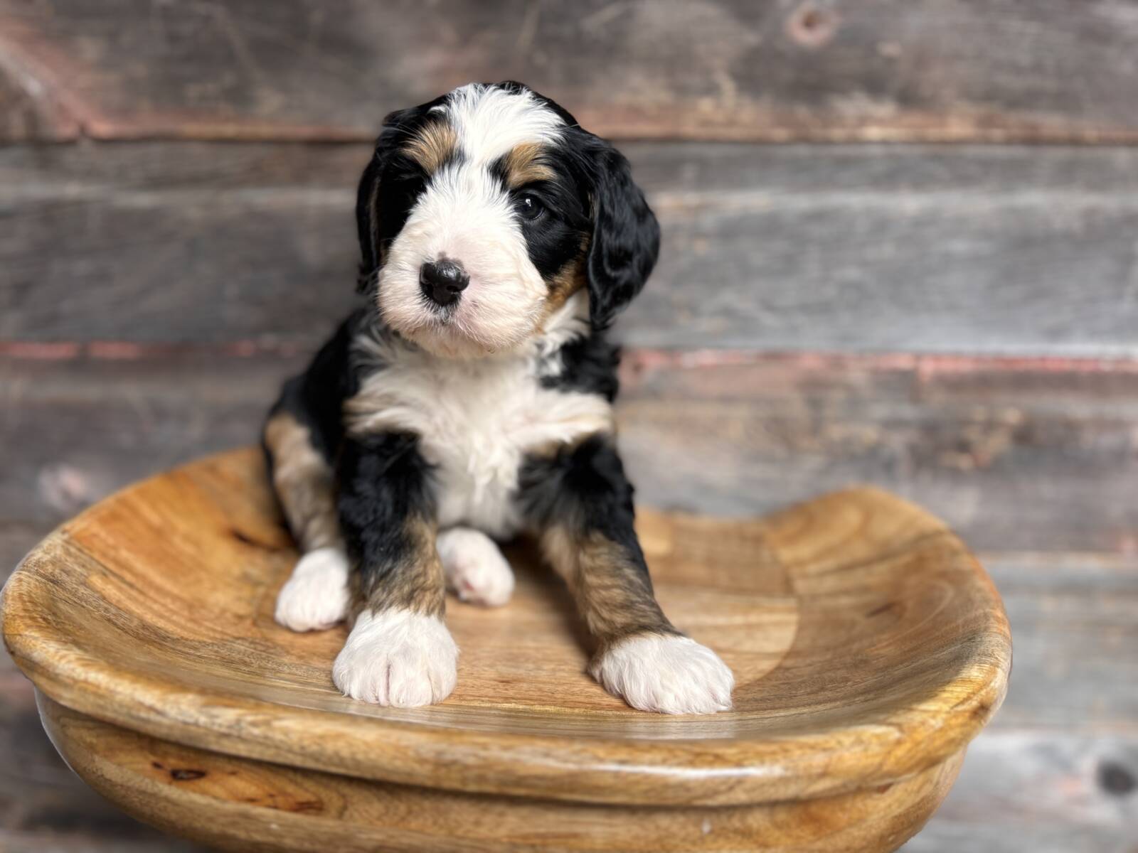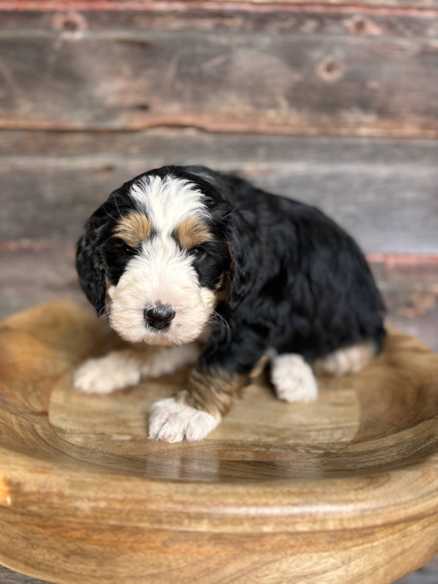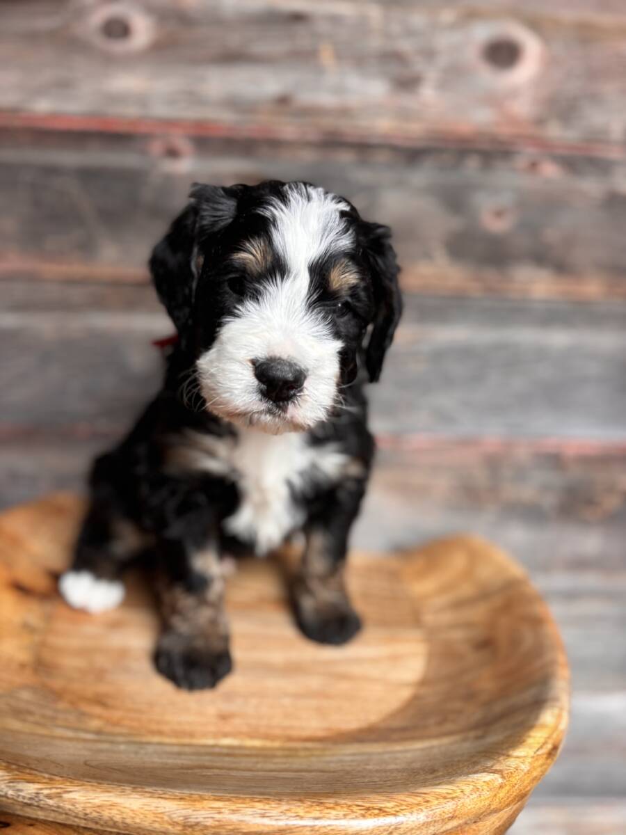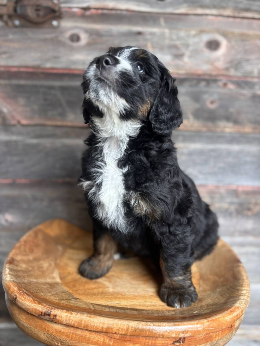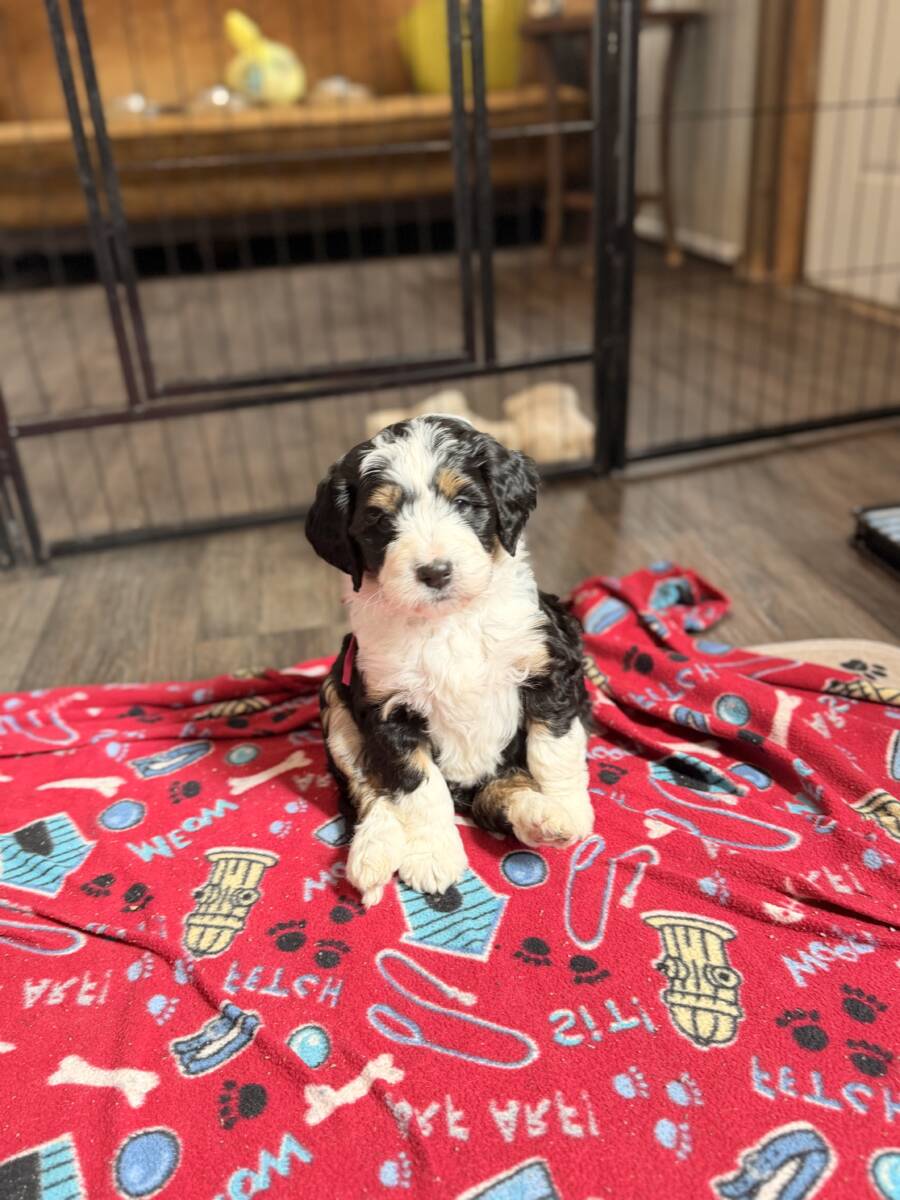 It has been so working with families this week to pick the best puppy for their home and now to have name for them for us to call them by! This week we will continue to have puppies spend naps in crates. Uecker has finished nursing to give puppies ample time to adjust to only eating dog food that we still soften. Puppies have their vet appointment Monday where they will have a full exam, vaccines, and be microchipped. Most potties are being done outside (unless we are distracted with visitors) and we are so excited for the sunshine and warmer temps that are coming to give puppies more time to play outside. We continue to give them time with our other dogs to help them become comfortable with other animals. We will begin to encourage puppies to sit when they greet us which is something that is so important to continue to reinforce once they come home. We are absolutely loving each puppy so much and can’t believe we are getting so close to take home!