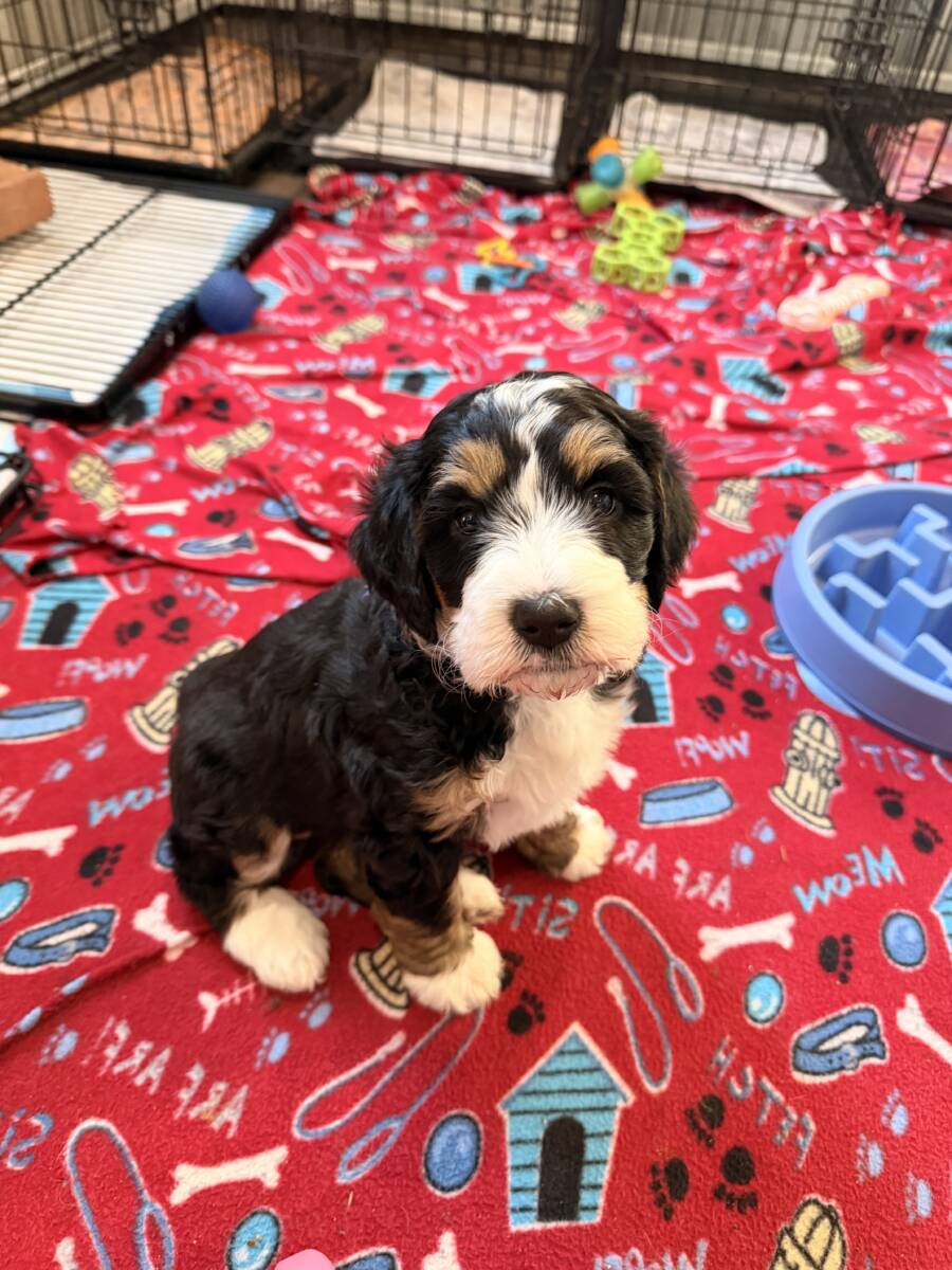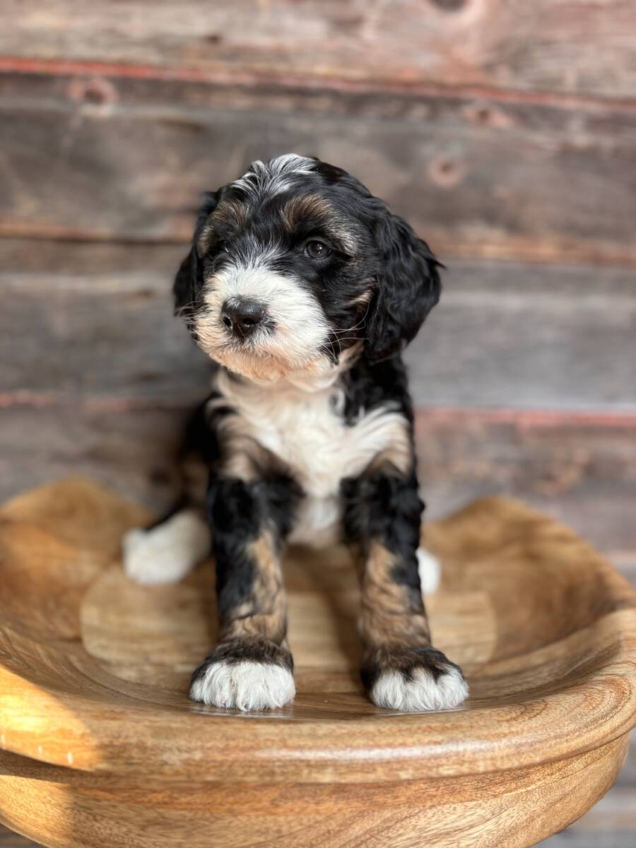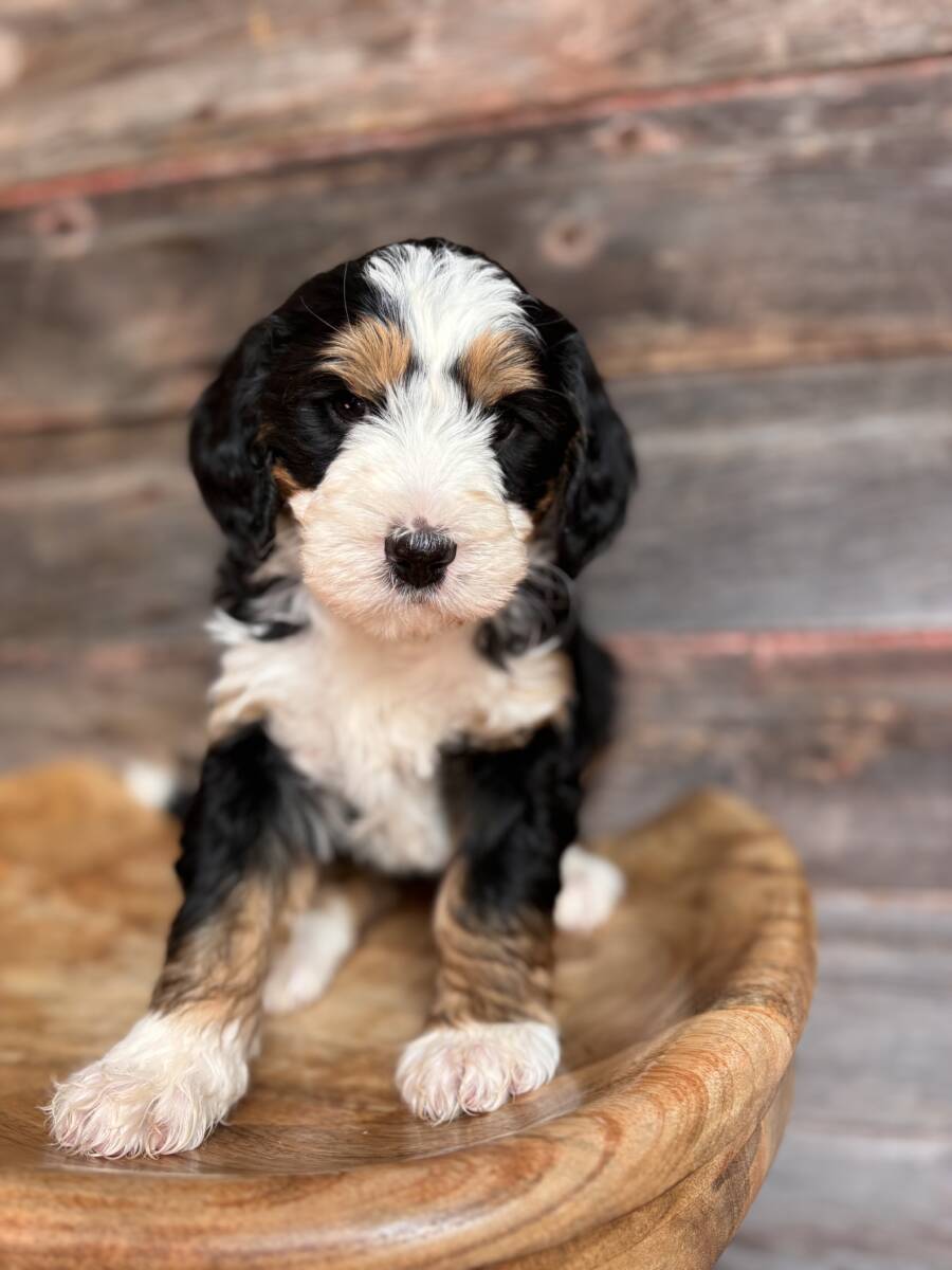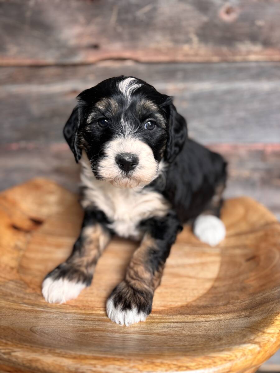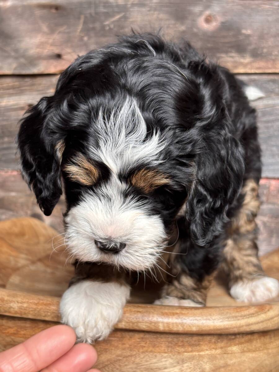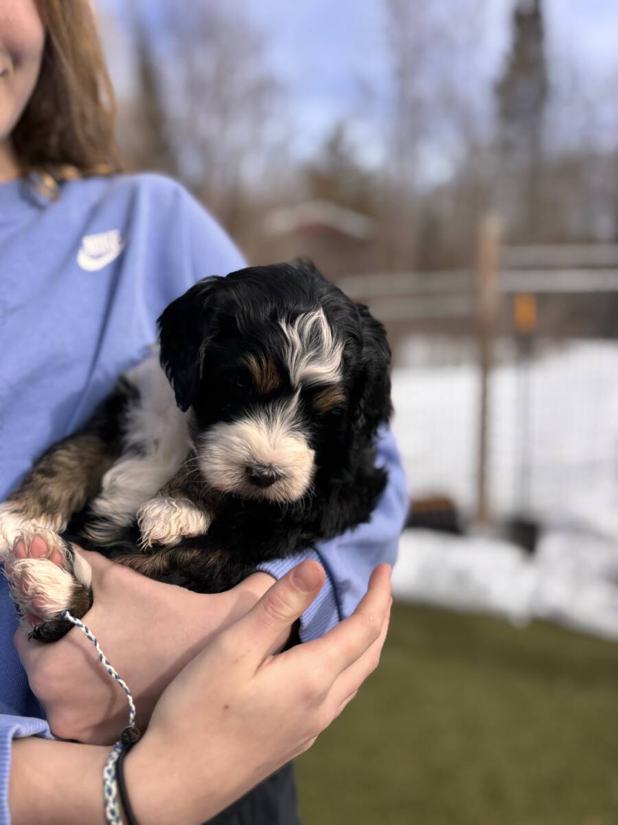 It has been so working with families this week to pick the best puppy for their home and now to have name for them for us to call them by! This week we will continue to have puppies spend naps in crates. Uecker has finished nursing to give puppies ample time to adjust to only eating dog food that we still soften. Puppies have their vet appointment Monday where they will have a full exam, vaccines, and be microchipped. Most potties are being done outside (unless we are distracted with visitors) and we are so excited for the sunshine and warmer temps that are coming to give puppies more time to play outside. We continue to give them time with our other dogs to help them become comfortable with other animals. We will begin to encourage puppies to sit when they greet us which is something that is so important to continue to reinforce once they come home. We are absolutely loving each puppy so much and can’t believe we are getting so close to take home!