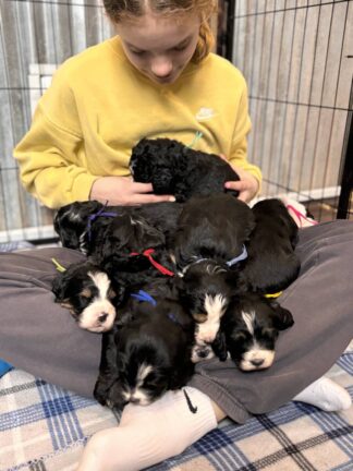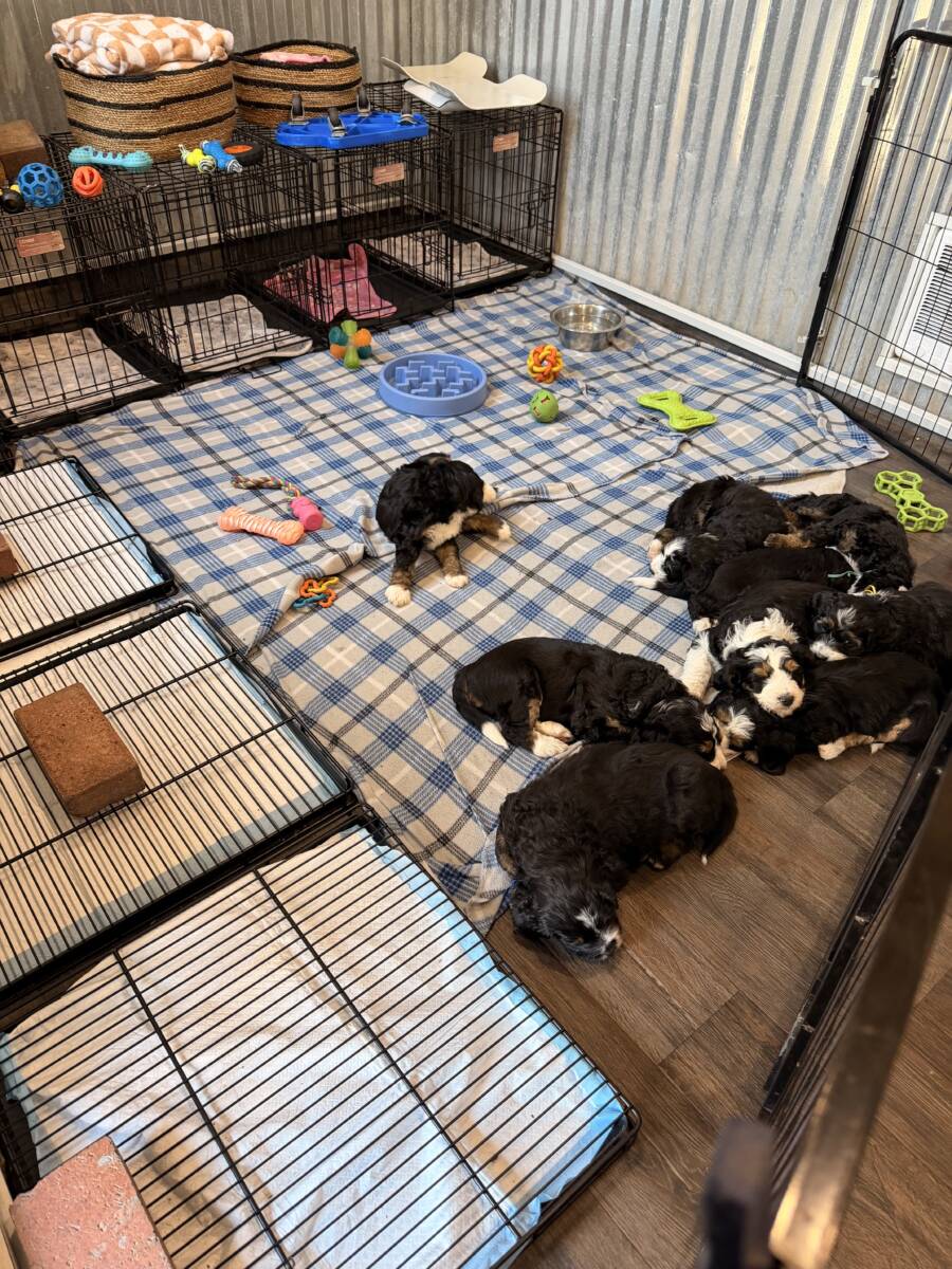 Hard to believe we are in the final week with these amazing puppies! We are so excited to have them meet their forever families. Puppies will continue to nap in their crate each day for 2 naps up to 2 hours each time as they tolerate. We are working on their names and having them sit to greet us which they are picking up on very quickly. They truly desire to please and are at the perfect stage to have more one on one attention and training. We have enjoyed this adventure with you all so very much and can’t wait to see you all soon!