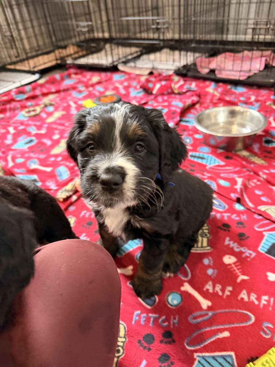 It has been fun to start the puppy picking process! Teal Girl is now Stormfly aka “Stormy” and Black Boy is now Beau. Puppies are 5 weeks old this week and developing before our eyes! They have mastered the doggie door and lots of potties are being done outdoors now which is so very exciting for us. They are eating 3 soft meals daily and will begin on hard dog food the end of this week. Uecker is taking longer breaks from them and nursing less as their teeth are very sharp which helps in the weaning process. Puppies will begin this week getting acclimated in very short intervals to time in crates which we will increase the time spent slowly each day. We have more planned visits with fiends & family also to give them positive interactions with more humans.