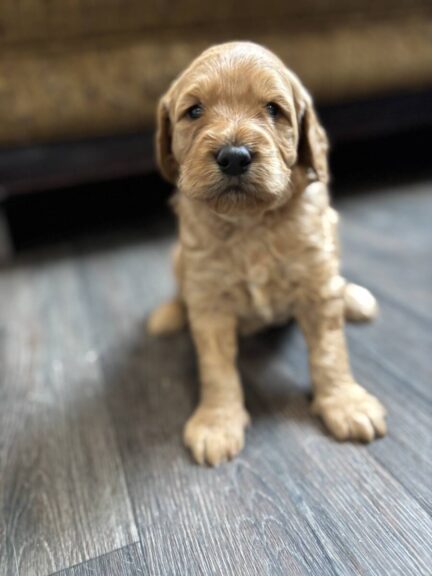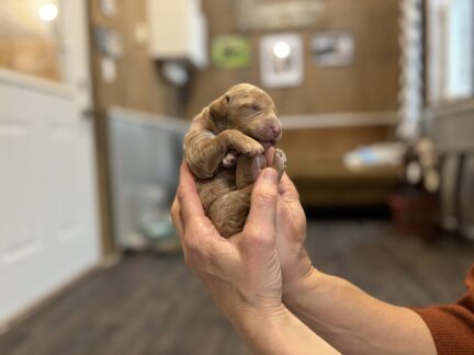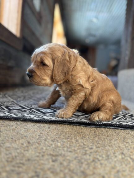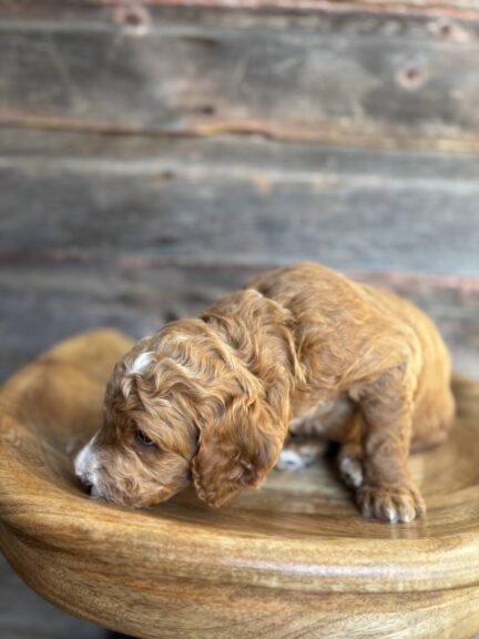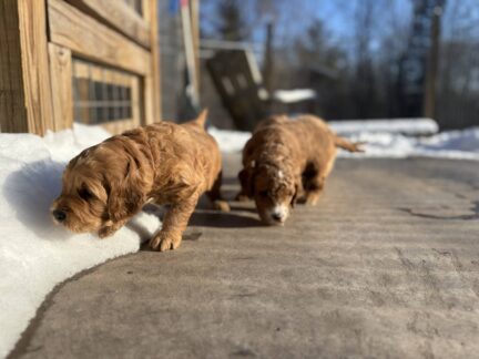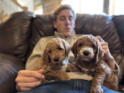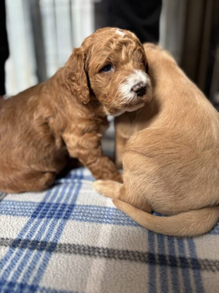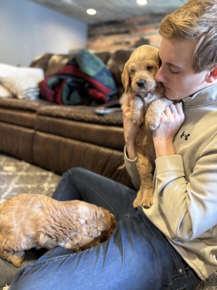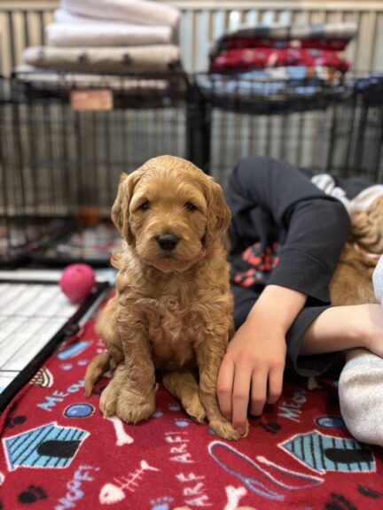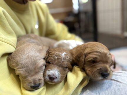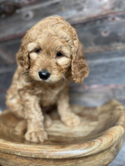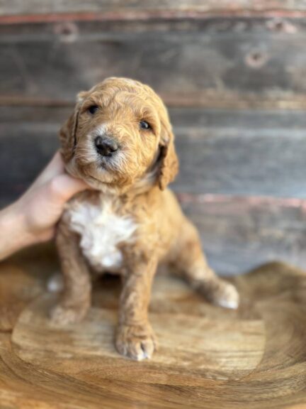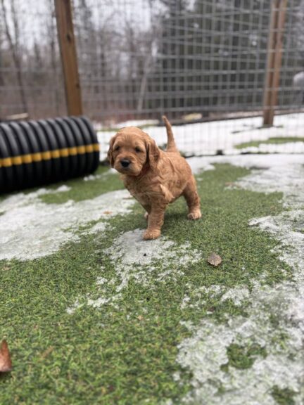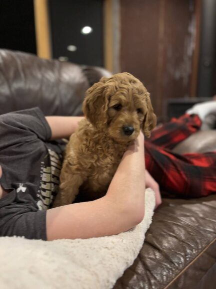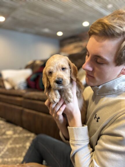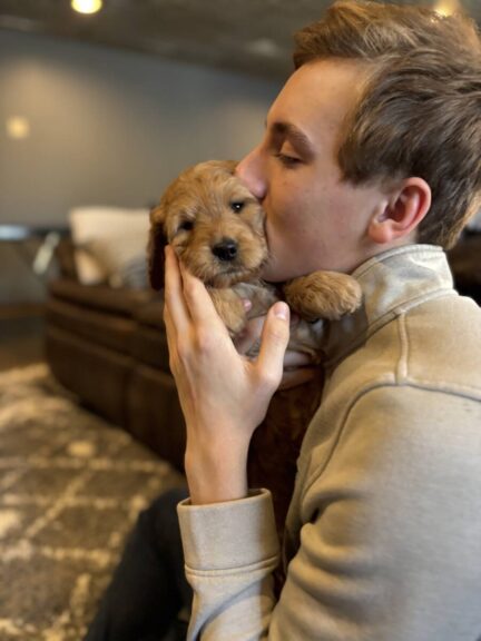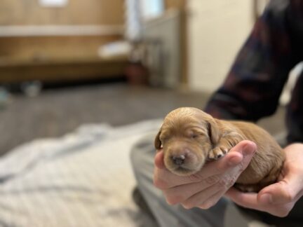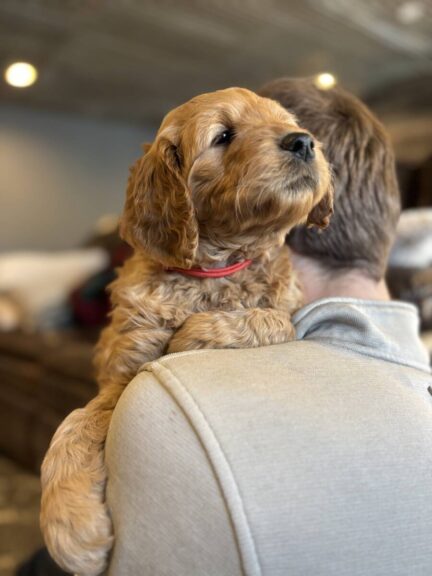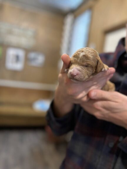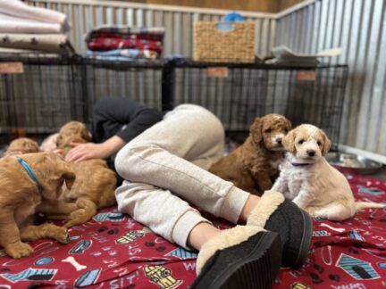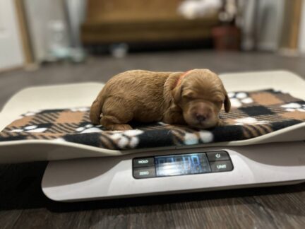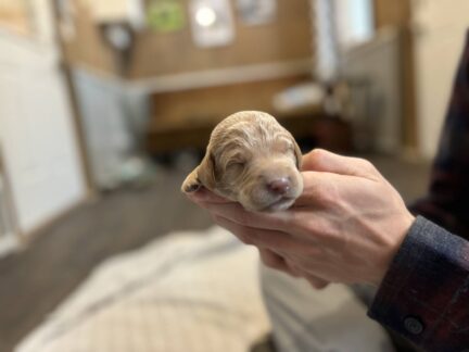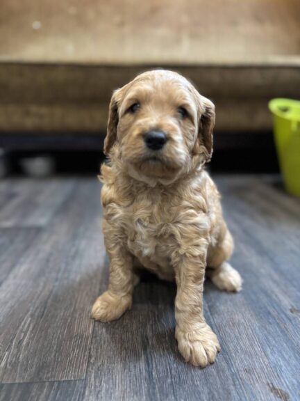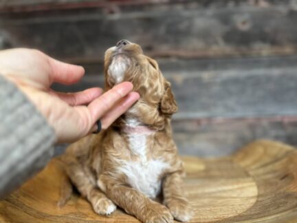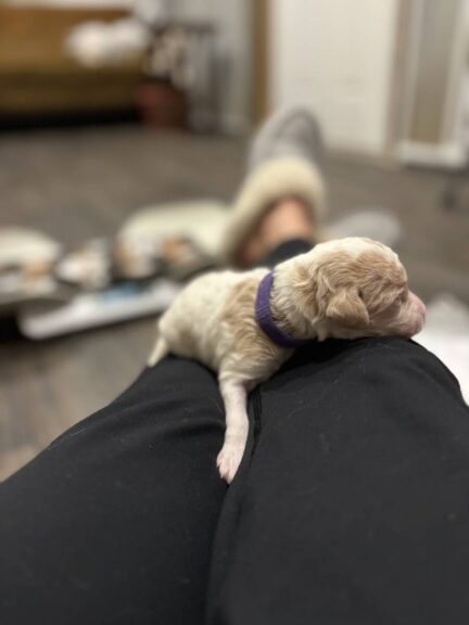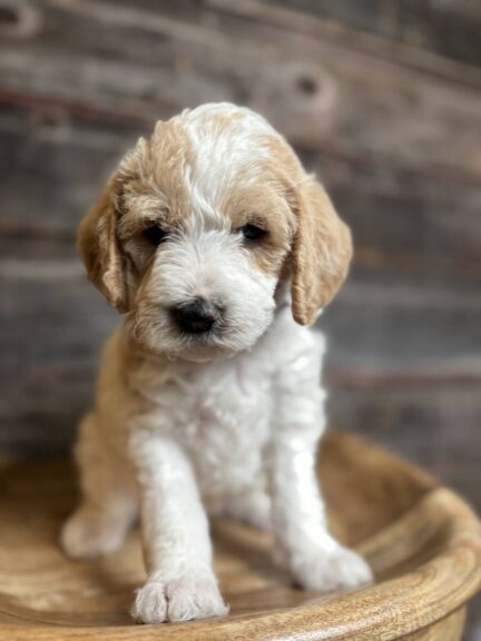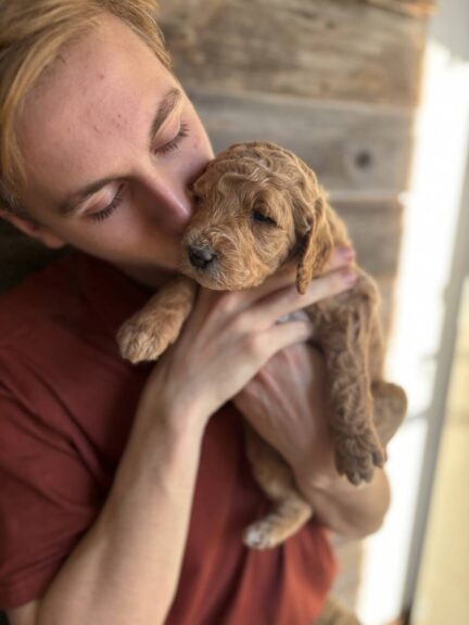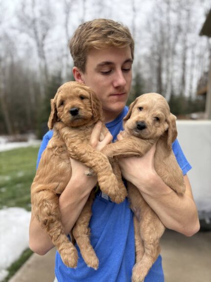 Puppies are at the funnest stage in our families opinion! They get so excited to see us and always are wagging their tails in excitement. We are looking forward this week as families start to pick their puppies. We will keep this page updated as puppies are chosen. This week we begin to have Kapri spend more time away from her puppies to start the weaning process. Puppies will have access to fresh water and by the end of the week will be eating 2-3 meals of very soft dog food. They will still nurse from Kapri but that will begin to be less as their teeth continue to grow in fully. We will continue to introduce them to new objects and toys daily. We will also work on startle response by making loud noises and then offer lots of reassurance. We also play a sounds CD several times daily to get them used to many sounds they may encounter during their lives like: fireworks, sirens, door bells, babies crying, and many more to help them become very accustomed to new sounds. We will have visits from more friends and family to give them lots of attention and get them used to more people. Puppies also will start to spend time outside as weather permits. This will get longer each day and potty breaks will be offered outside until they can start to use the doggie door and choose to go outside to potty on their own. Puppies will be separated from their siblings for short periods daily to interact with us 1 on 1. We will enlarge their area to give them more room to play and explore while continuing to provide an area for them to go potty. They will spend short periods of time in a crate just to become familiar with this new space. So many fun things to come this week!
