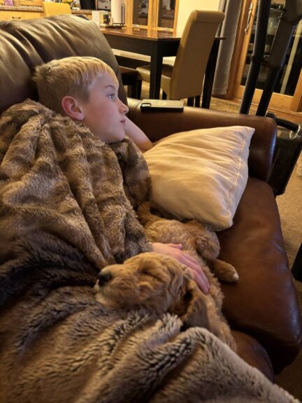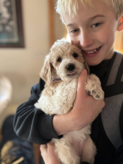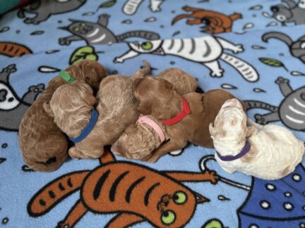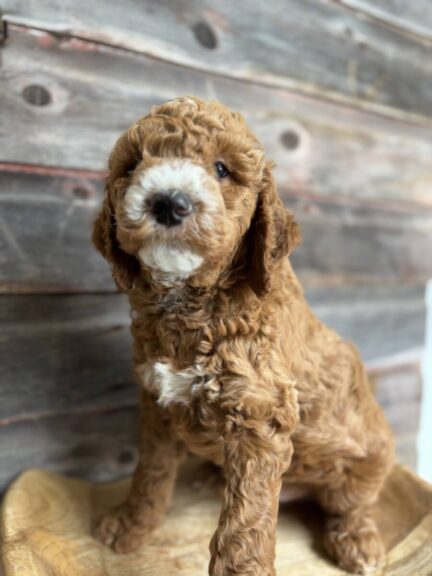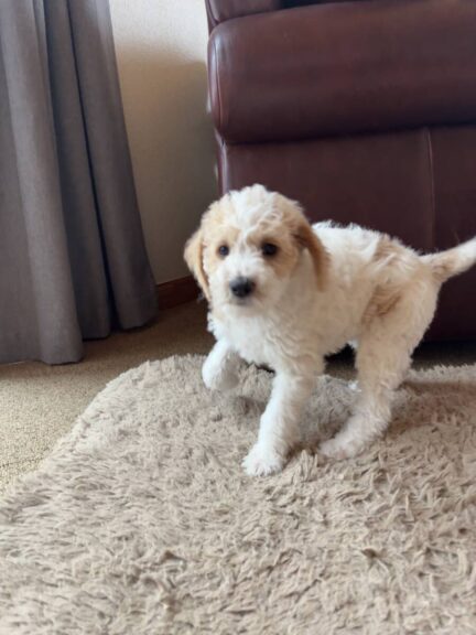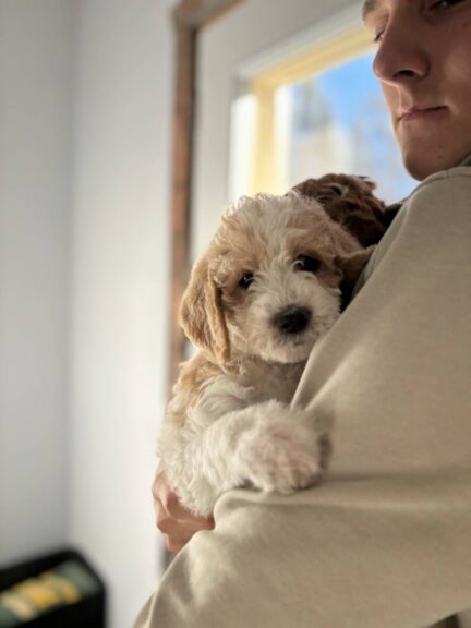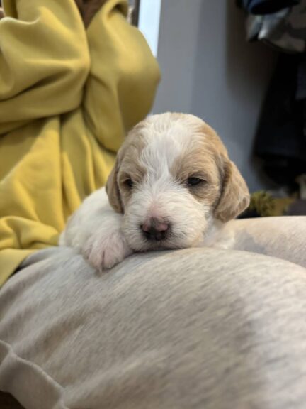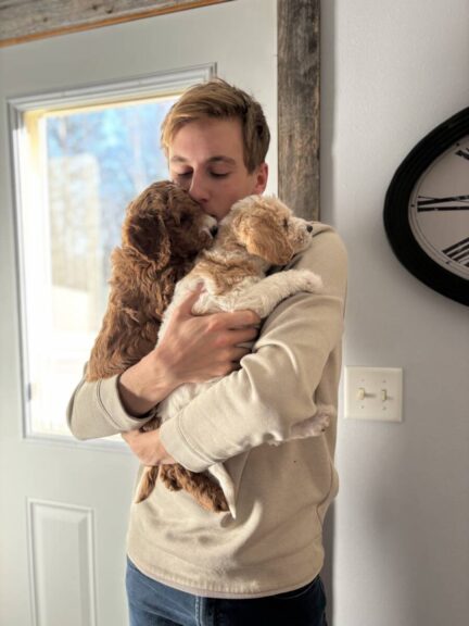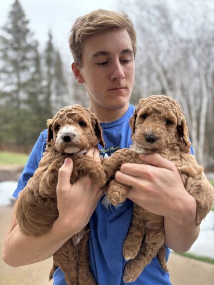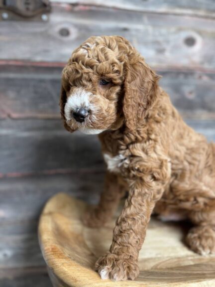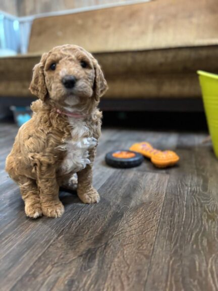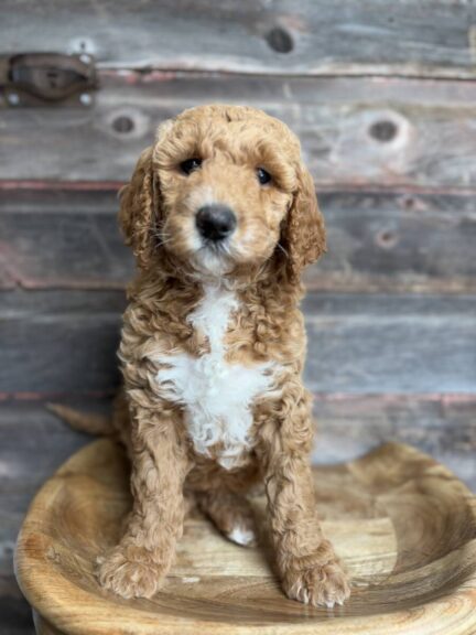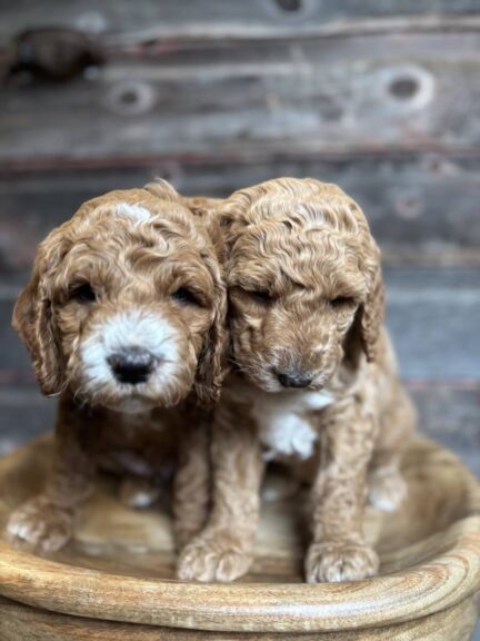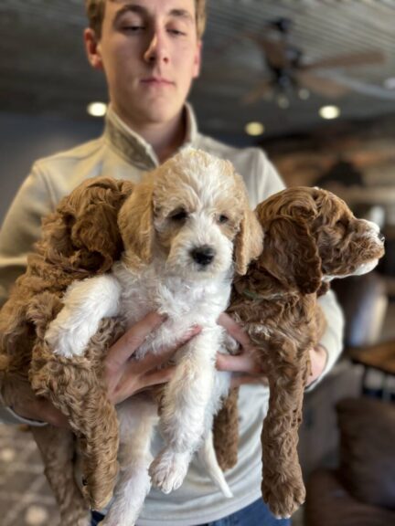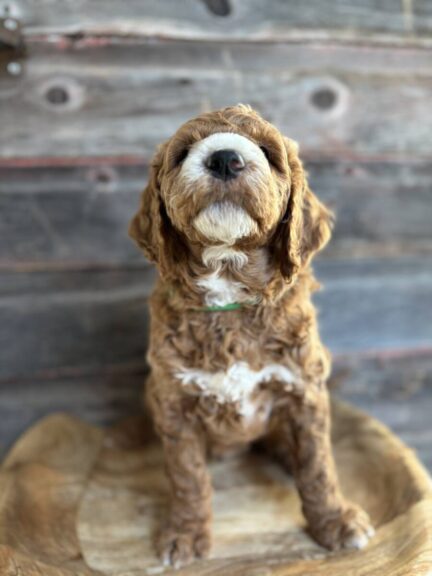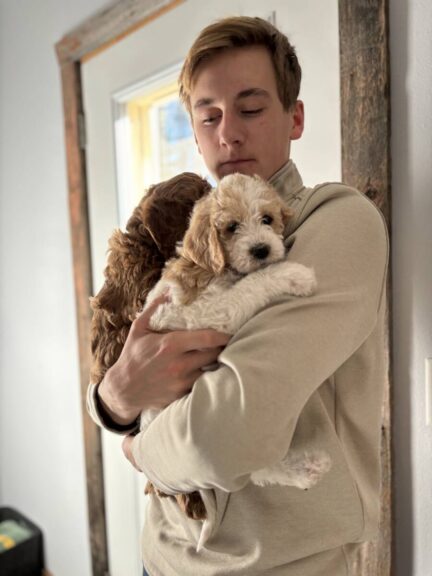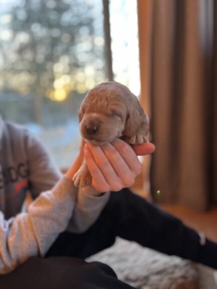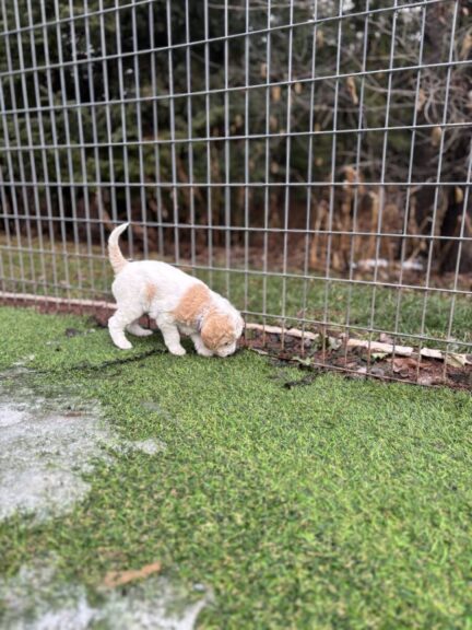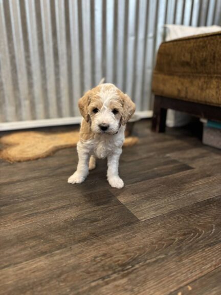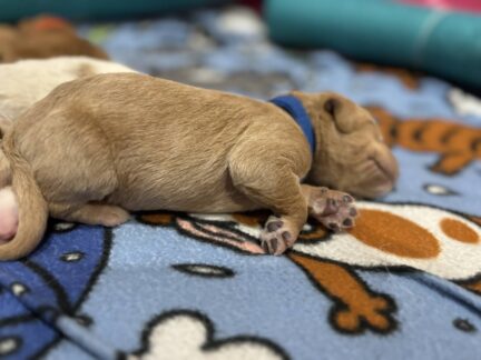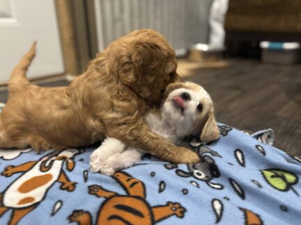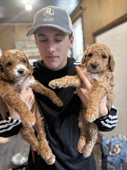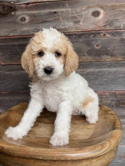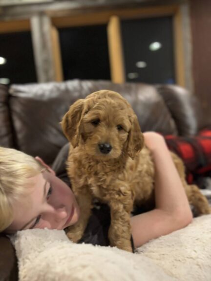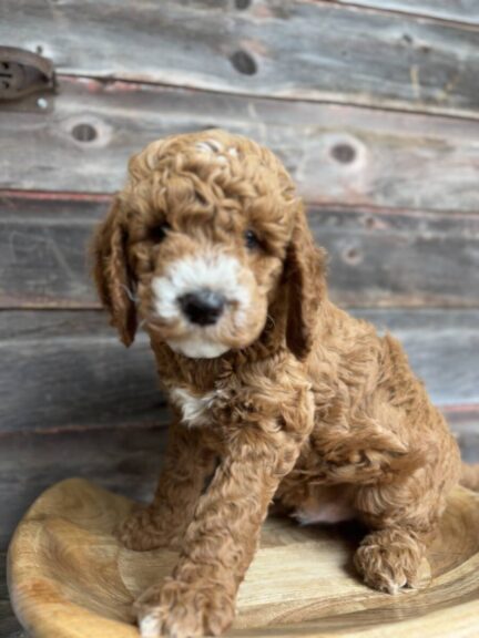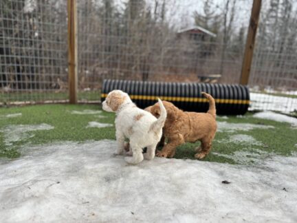 Puppies are at the funnest stage in our families opinion! They get so excited to see us and always are wagging their tails in excitement. We are looking forward this week as families start to pick their puppies. We will keep this page updated as puppies are chosen. This week we begin to have Kapri spend more time away from her puppies to start the weaning process. Puppies will have access to fresh water and by the end of the week will be eating 2-3 meals of very soft dog food. They will still nurse from Kapri but that will begin to be less as their teeth continue to grow in fully. We will continue to introduce them to new objects and toys daily. We will also work on startle response by making loud noises and then offer lots of reassurance. We also play a sounds CD several times daily to get them used to many sounds they may encounter during their lives like: fireworks, sirens, door bells, babies crying, and many more to help them become very accustomed to new sounds. We will have visits from more friends and family to give them lots of attention and get them used to more people. Puppies also will start to spend time outside as weather permits. This will get longer each day and potty breaks will be offered outside until they can start to use the doggie door and choose to go outside to potty on their own. Puppies will be separated from their siblings for short periods daily to interact with us 1 on 1. We will enlarge their area to give them more room to play and explore while continuing to provide an area for them to go potty. They will spend short periods of time in a crate just to become familiar with this new space. So many fun things to come this week!