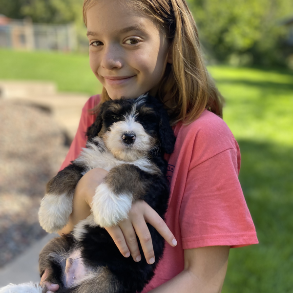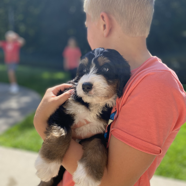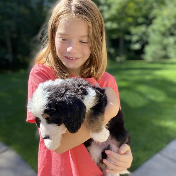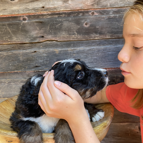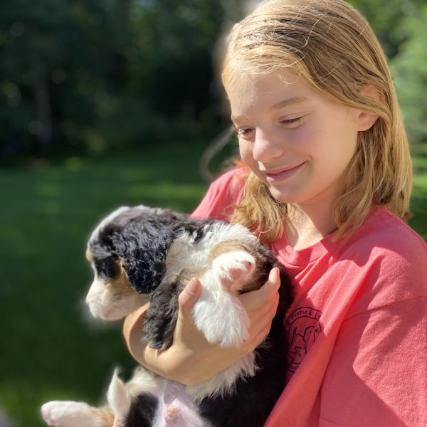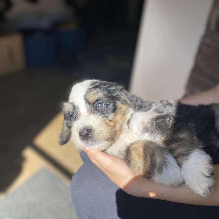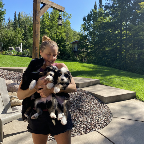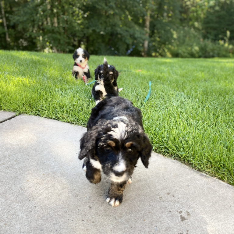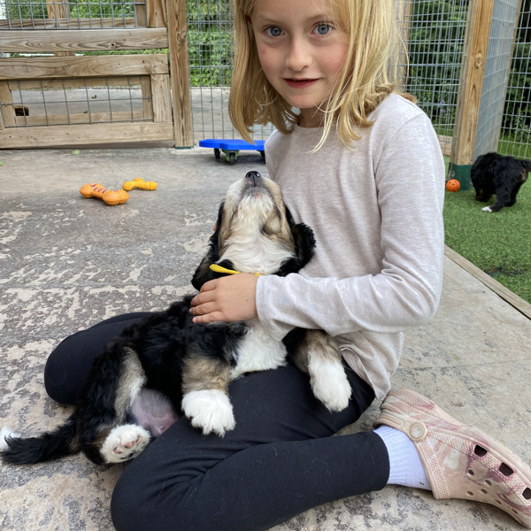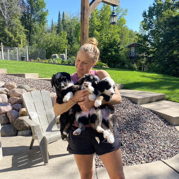 This has been a super fun, full week with lots of visitors to help continue to give the puppies tons of socialization and new experiences. They have each had exposure to a ride in the van as well as time with a leash and collar on. They have gotten to experience water and their first bath. They love having time to run and explore in the yard and play with our other mamas. They are now in a crate twice daily for 2 hours each time. They have had a few naps alone in a crate and we will continue that this week. They are eating hard food and Vernie will no longer nurse as today was her last time. She still keeps a close eye on all that goes on with the puppies though. We continue to play a sounds CD to get them used to many sounds that they have not been able to encounter while in our home. We are so impressed with the sweet nature, intelligence, and fun loving puppies they have all become. They will truly be a wonderful addition to their forever homes very soon! Spread the word as we still have males available.
