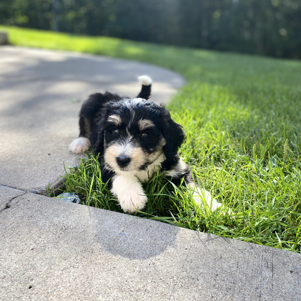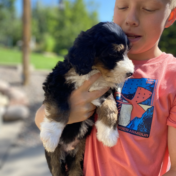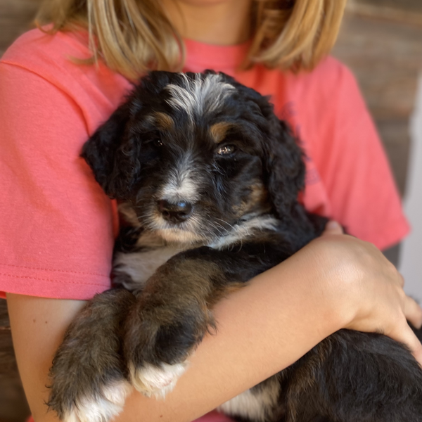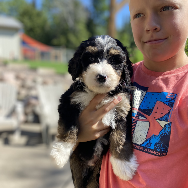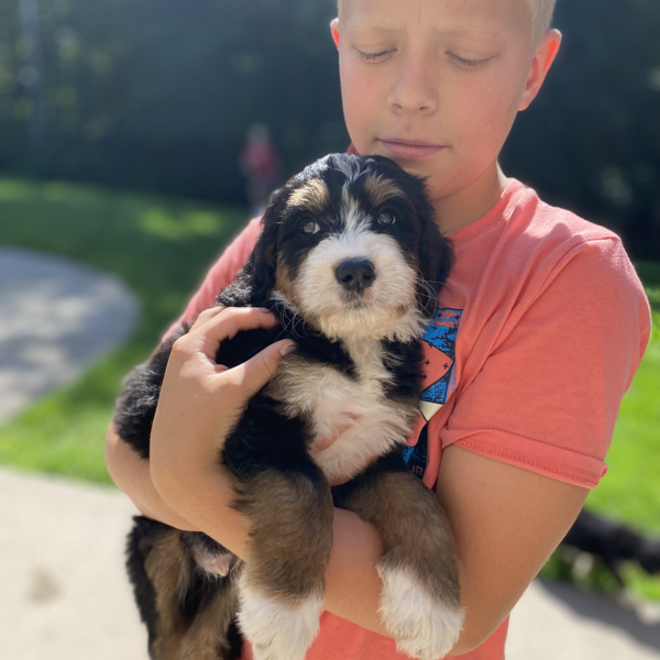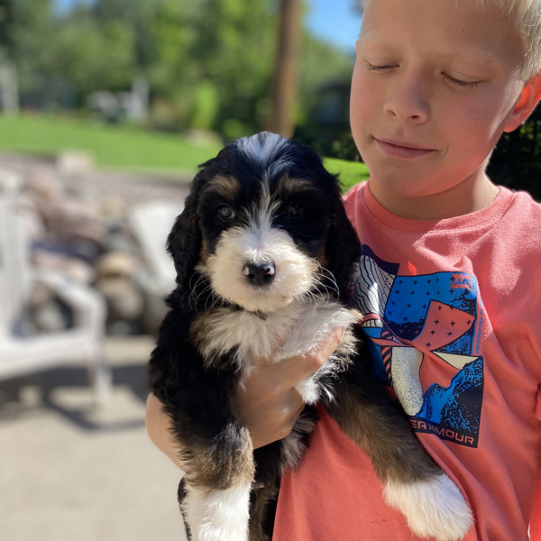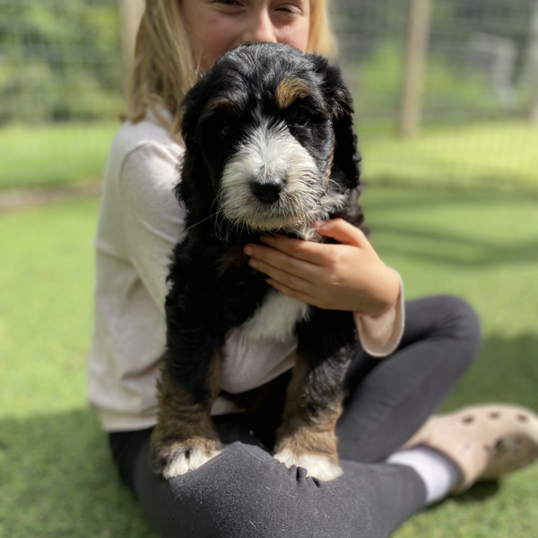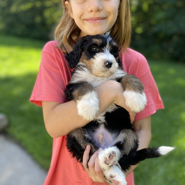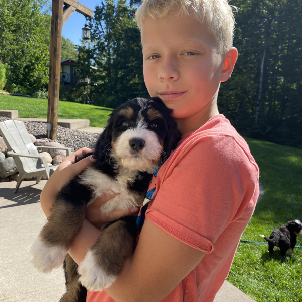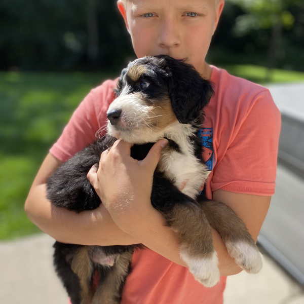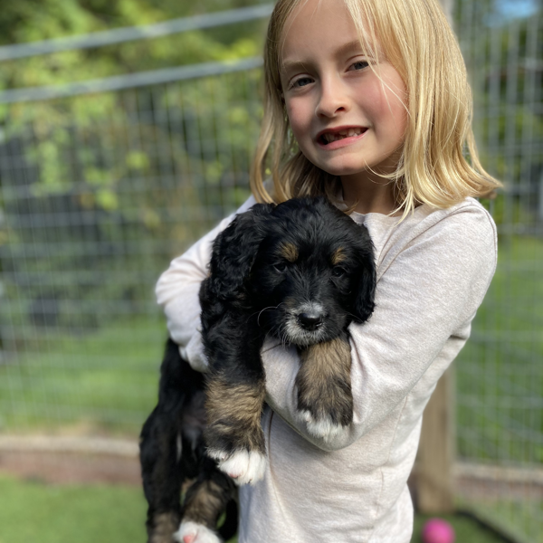 This has been a super fun, full week with lots of visitors to help continue to give the puppies tons of socialization and new experiences. They have each had exposure to a ride in the van as well as time with a leash and collar on. They have gotten to experience water and their first bath. They love having time to run and explore in the yard and play with our other mamas. They are now in a crate twice daily for 2 hours each time. They have had a few naps alone in a crate and we will continue that this week. They are eating hard food and Vernie will no longer nurse as today was her last time. She still keeps a close eye on all that goes on with the puppies though. We continue to play a sounds CD to get them used to many sounds that they have not been able to encounter while in our home. We are so impressed with the sweet nature, intelligence, and fun loving puppies they have all become. They will truly be a wonderful addition to their forever homes very soon! Spread the word as we still have males available.