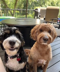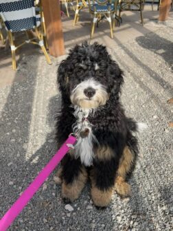 Our F1b medium bernedoodle puppies range in size from 40-60 lb when mature. Gia is bred with Winston to produce our medium f1b Bernedoodle puppies. He is a Moyen Poodle (very small standard poodle 18″ tall) with an amazing temperament. Puppies are our most hypoallergenic puppies with a very low to no shed coat as they are 75% poodle and 25% Bernese Mountain Dog. They are very loyal, snuggly, goofy natured animals that are loved by the families who take them home.
