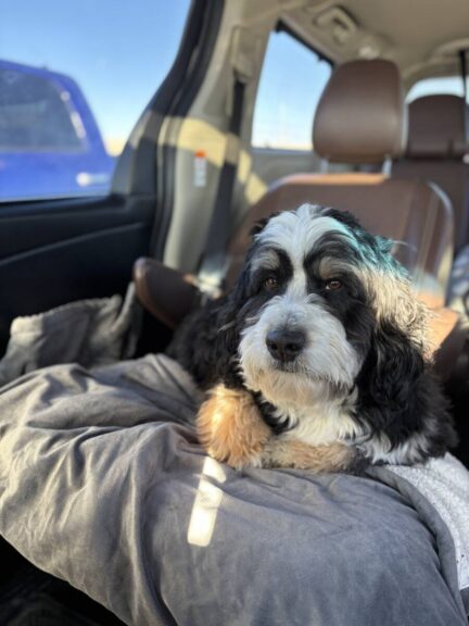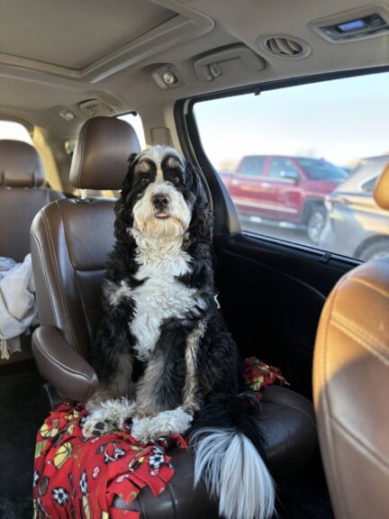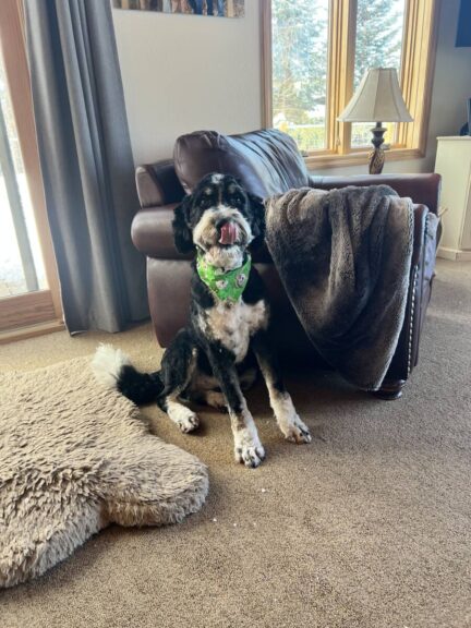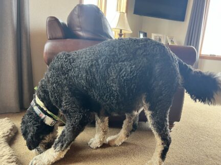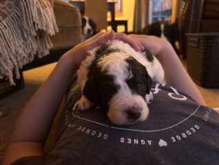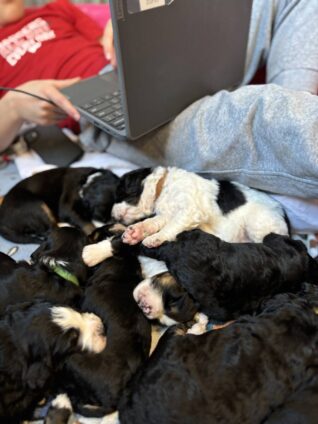 No puppies yet but Uecker is showing lots of signs that we are within the 24 hour window. She went for a nice walk last night and is enjoying all the snuggles we are giving her. She is holding up well with mild contractions currently. Her temperature dripped this morning so we are all ready for delivery very soon. It is pretty typical that it could be late in the night but I will be sure to update once they are all delivered and doing well.