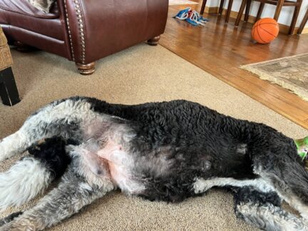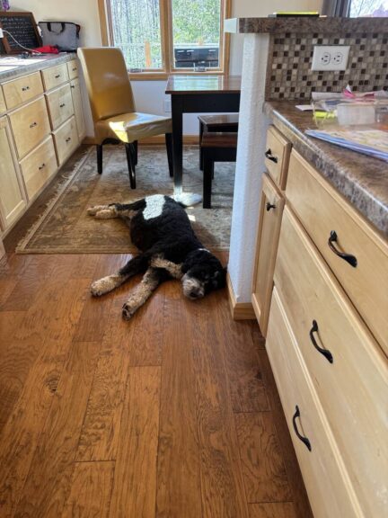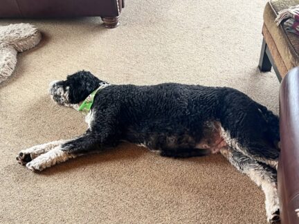 The many positions of labor! Uecker doing her best to get comfortable. Still no puppies…we will see if my prediction of middle of the night is correct.
