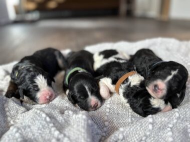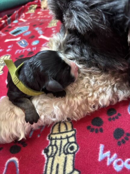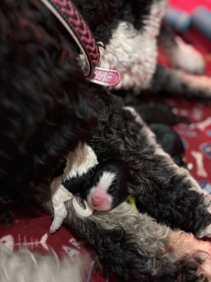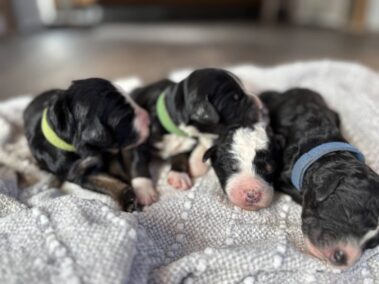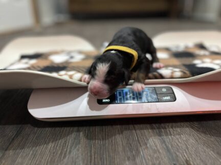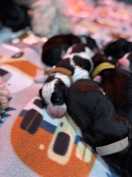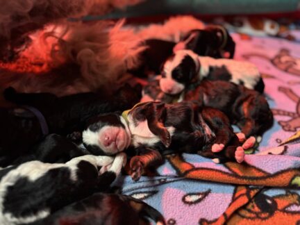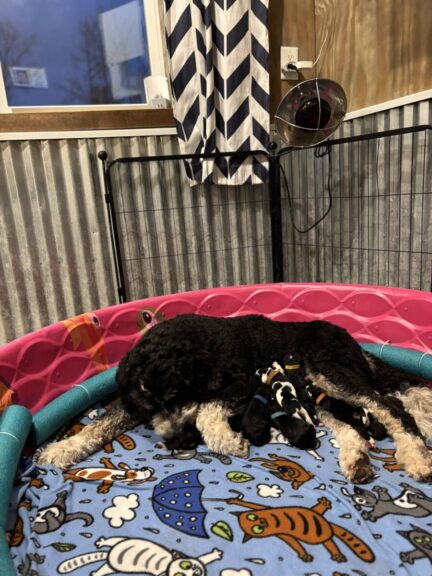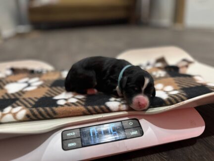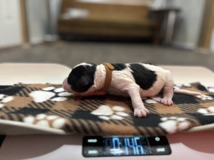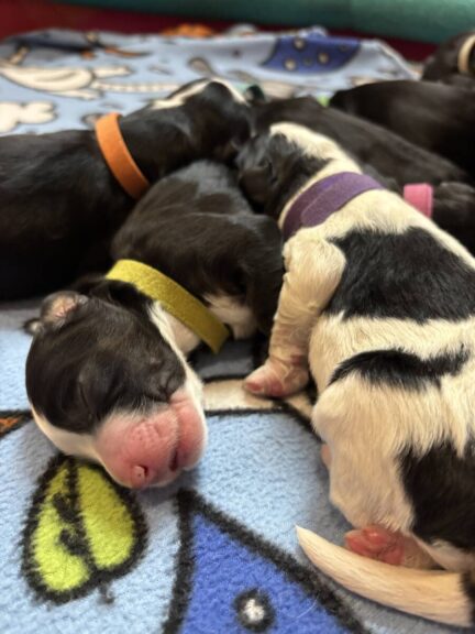 The first 24 hours are so critical and I am so happy to say everyone is doing very well! Each puppy gained weight overnight and Uecker is eating and nursing well. Again, the first 3 days we support Uecker, but try to keep things very calm, quiet, and little activity as possibly to give her time to adjust to adjust and bond with her puppies. By day 3 we will start to handle each puppy more intentionally and we can’t wait for that time with each one. Here are a few pictures from this morning.