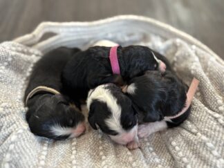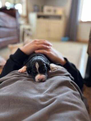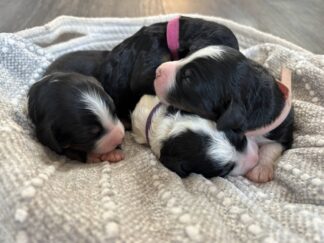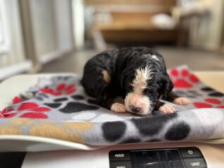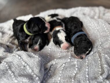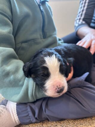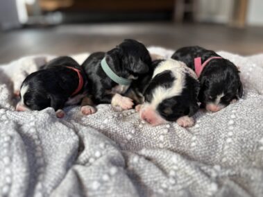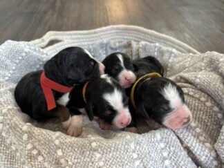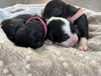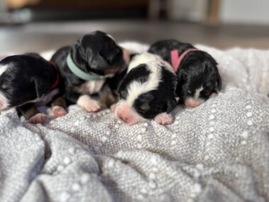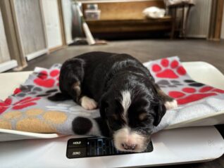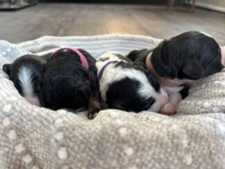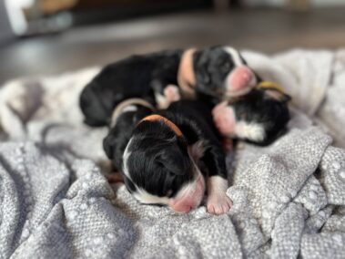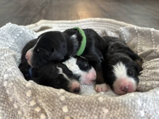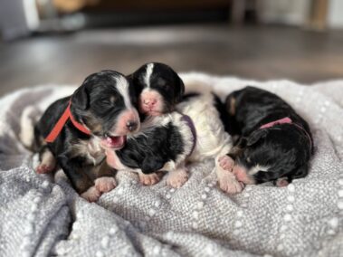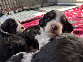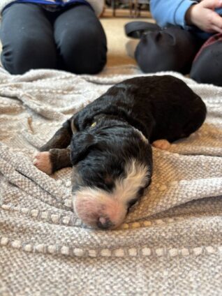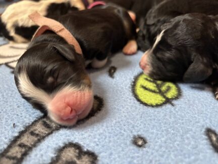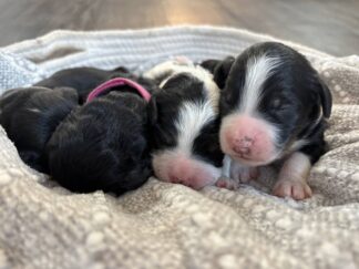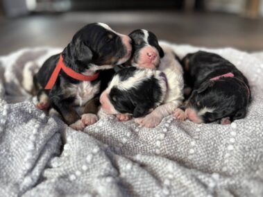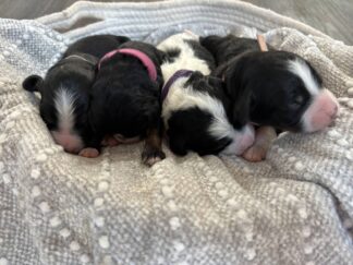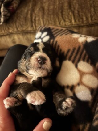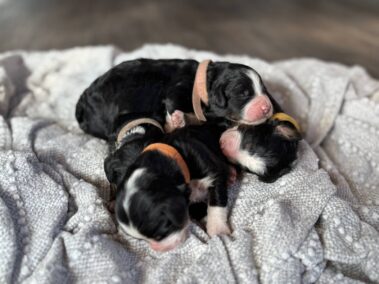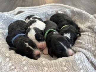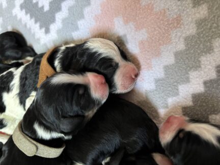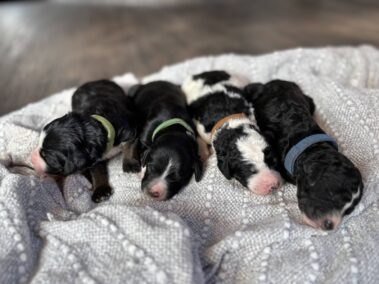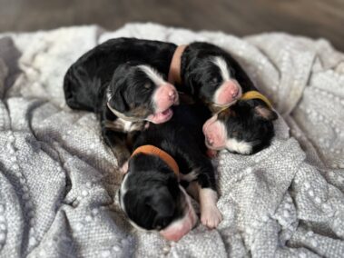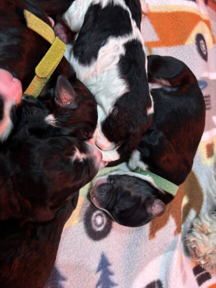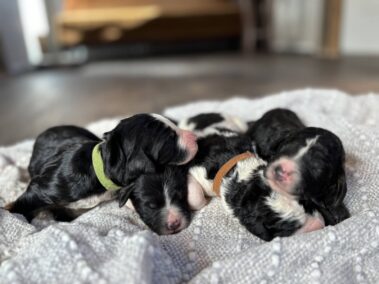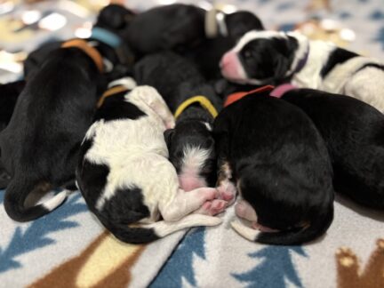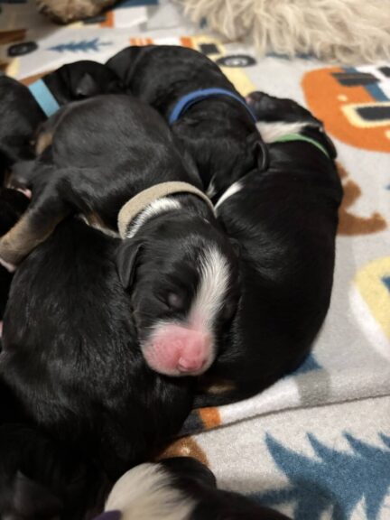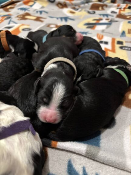 Puppies have started to open their eyes and are moving around more these days. They have started to take their first wobbly steps which is so fun to watch. Snuggles are our favorite part of the process and we are eating up each moment of this stage before they are more on the go. We continue to do our intentional “ENS” now twice daily with each puppy. Puppies have had their nails trimmed again and collars made larger to accommodate their growth. We also have given them their first dose of dewormer and will continue that every 2 weeks until they go home. By the end of this week puppies ears will be opening and then they will really begin to progress and learn more through their senses. Looking forward to a fun week ahead!