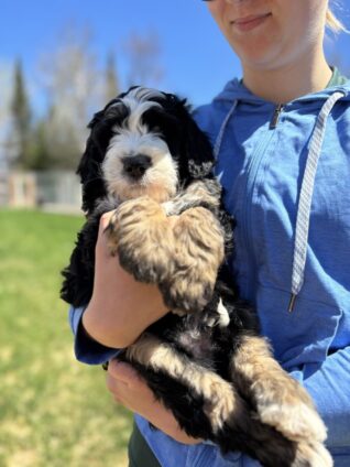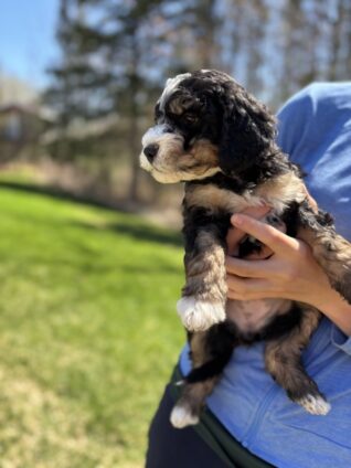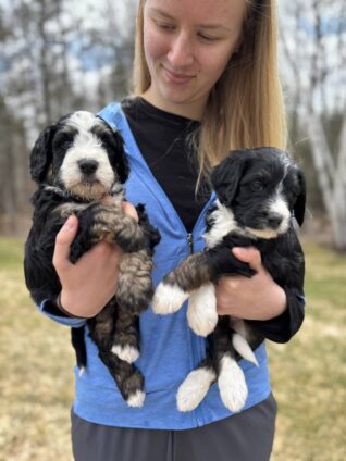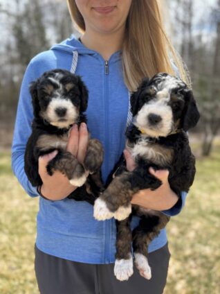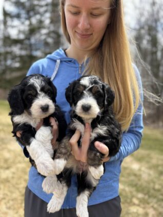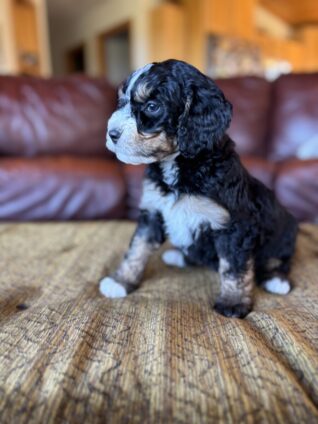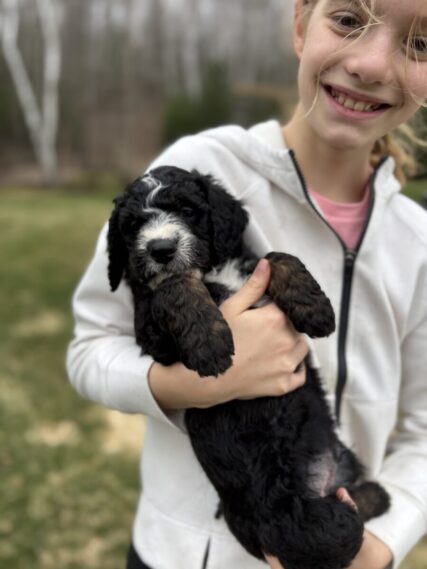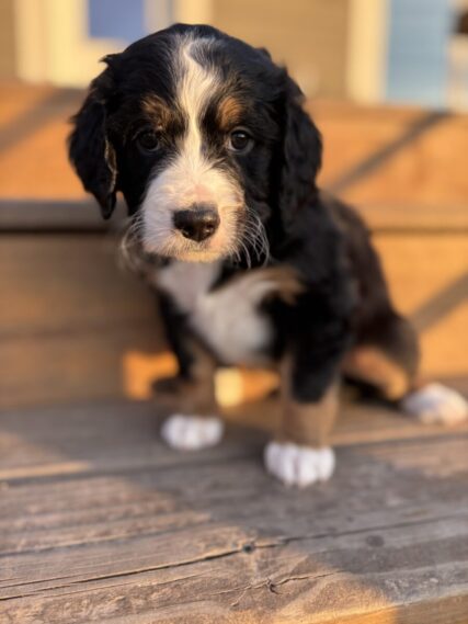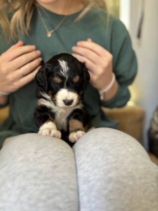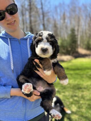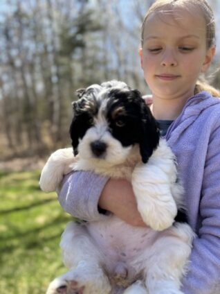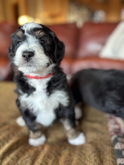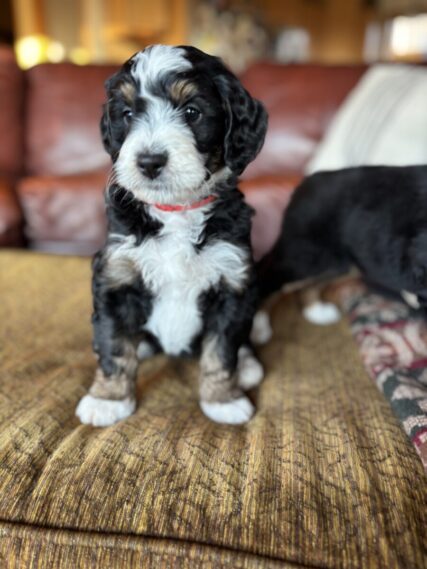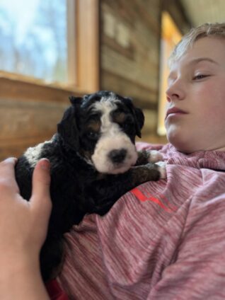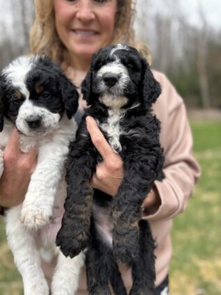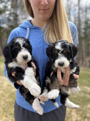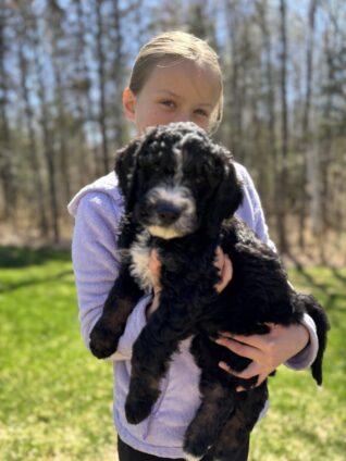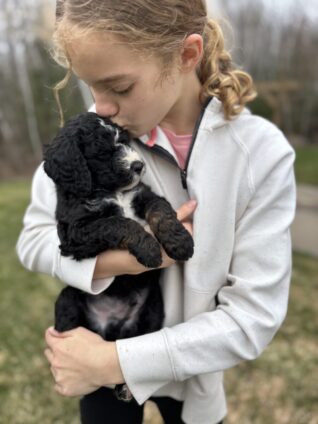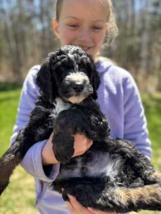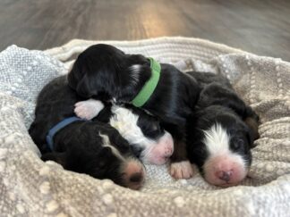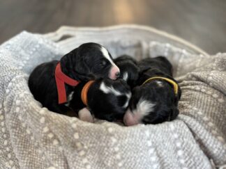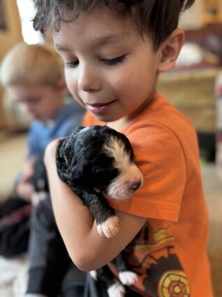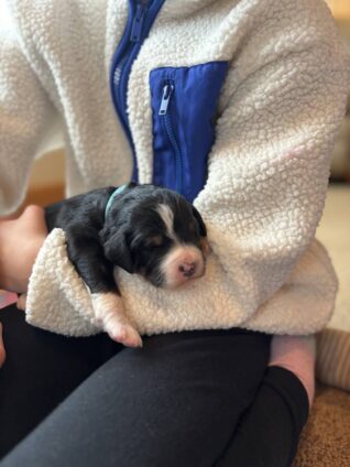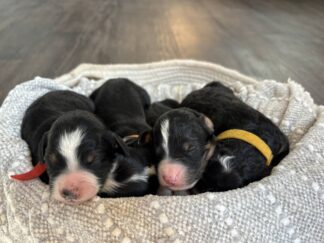 Hard to believe we are in the final week with these amazing puppies! We are so excited to have them meet their forever families. Puppies will continue to nap in their crate each day for 2 naps up to 2 hours each time as they tolerate. We are working on their names and having them sit to greet us which they are picking up on very quickly. They truly desire to please and are at the perfect stage to have more one on one attention and training. Blue boys family needed to wait for our next litter with their busy schedules so spread the word he and Miss Fuchsia are available. We have enjoyed this adventure with you all so very much and can’t wait to see you all Friday!
